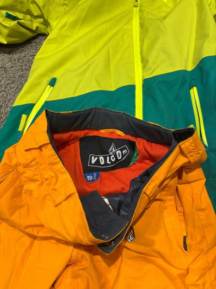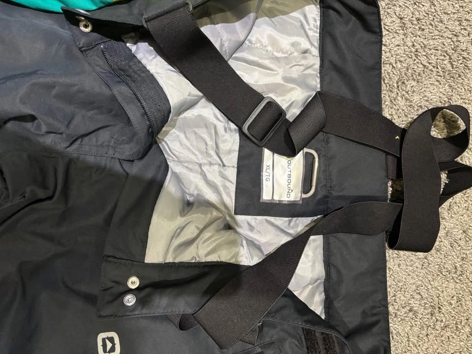 10Brand New Outbound XL Black Men’s Snowboarding Pants With Suspenders $50 Used Volcom Orange Youth Boys XL $40 Men’s PWDR ROOM Medium Green Jacket $45