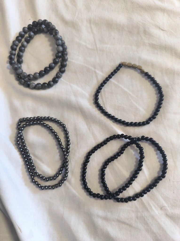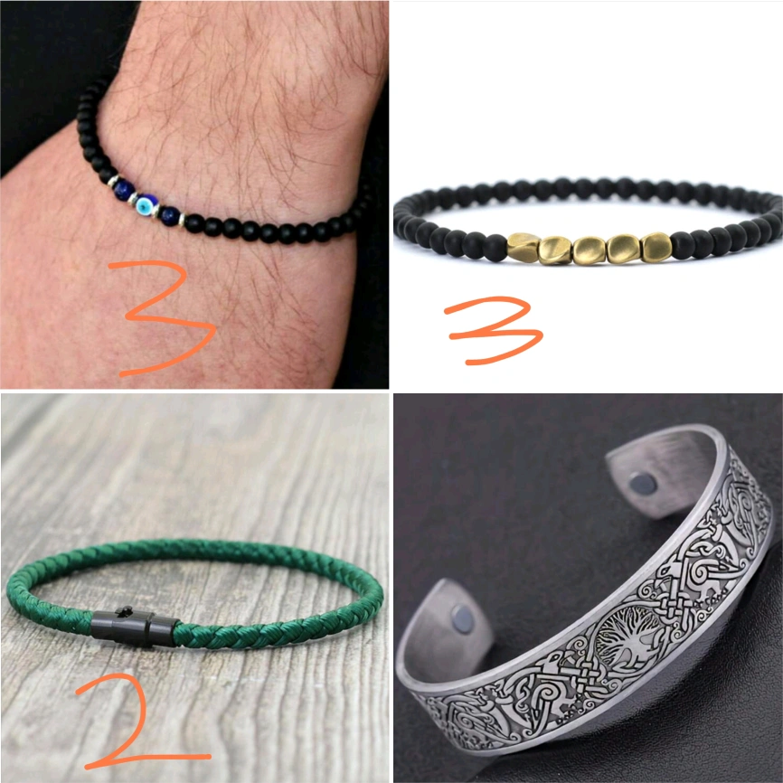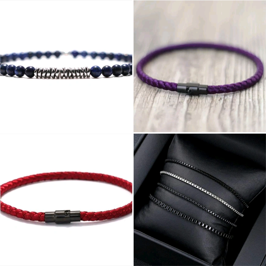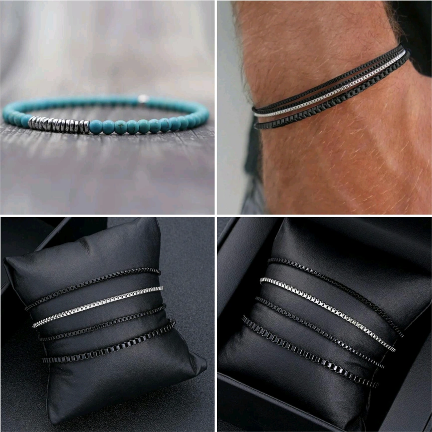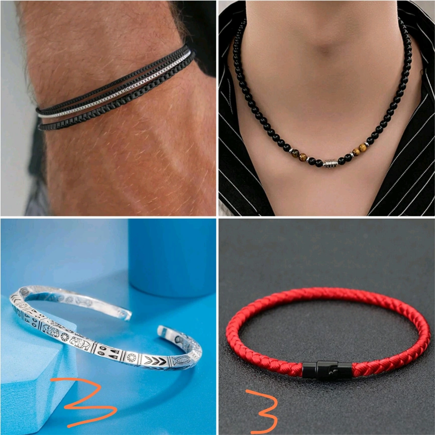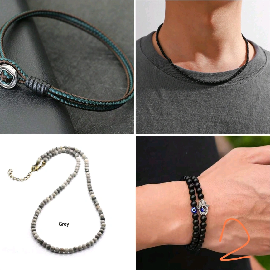 Selling a variety of men's bracelets and necklaces. You can find beaded necklaces, braided bracelets, and cuff bracelets. There are various colours and styles to choose from! Perfect for adding a touch of style to any outfit big bracelets and necklaces for $10 any other peice $5