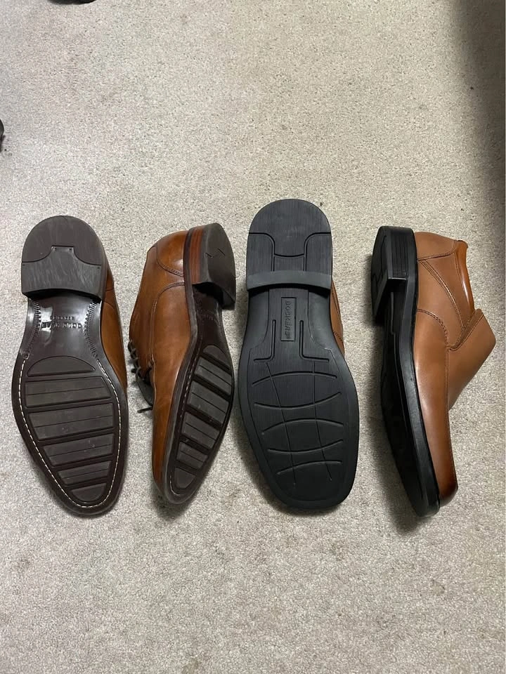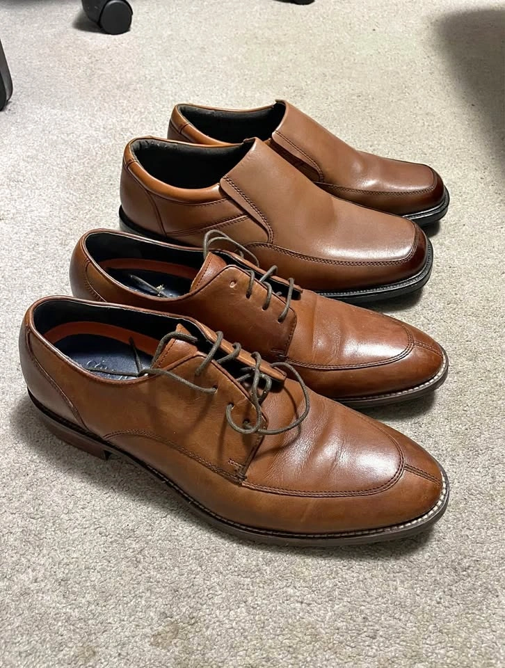 Both pairs have only been tried on once and never put on again: Dockers Brown Leather 10 / 10 Condition Men’s US 9 - Asking for $70 firm Cole Haan Brown Leather 9 / 10 Condition Men’s US 8 (narrower width) - Asking for $70 firm Pickup at my address located near Joyce Skytrain station 🙏 Thank you for viewing and check out my other listings!
