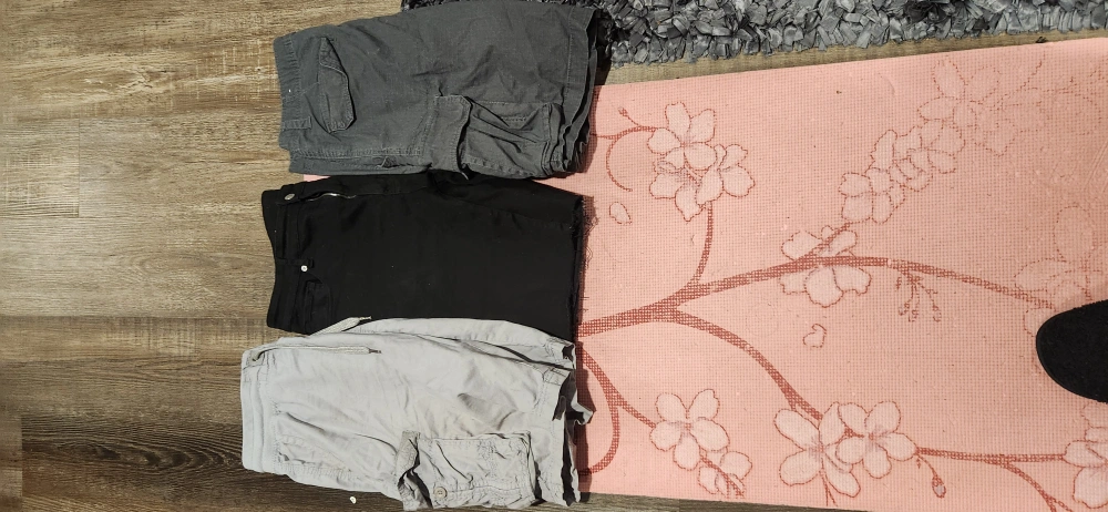 Get ready for summer with this lot of men's shorts, all in size 36, 38. There's a pair of light grey cargo shorts, a pair of charcoal grey cargo shorts from CSG, and a pair of black denim cutoff shorts. These shorts are in good used condition and ready for a new home. * Size: 36 38 * Styles: Cargo and Denim Cutoffs * Colours: Light Grey, Charcoal Grey, Black I'm asking 25 dollars for the bundle. Pick up in Orleans.