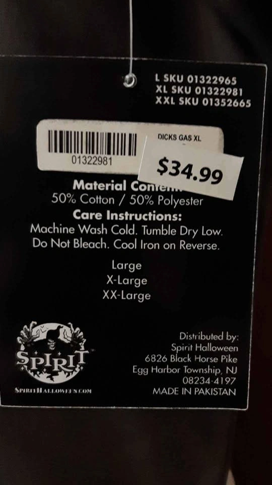 Gas station work shirt. Bought at Spirit Halloween last year, but never worn. New with tags. Size XL. Pick up @ Trafalgar and Cornwall in Oakville.