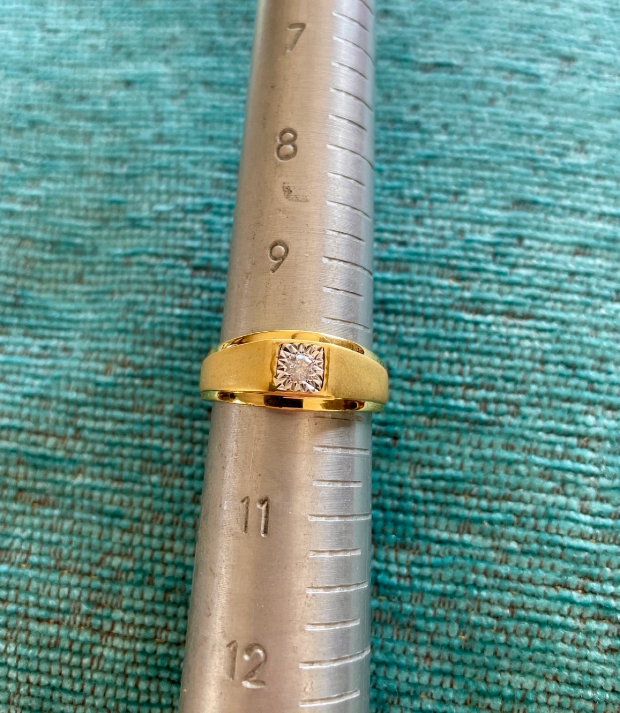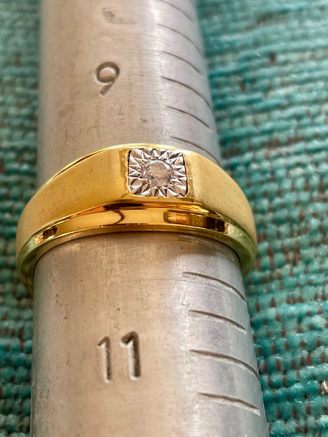Men’s ring (925 Sterling Silver) ,plated with 14k yellow gold . Features a single solitaire natural white diamond. Size 10. Great Gift 🎁 for great person.