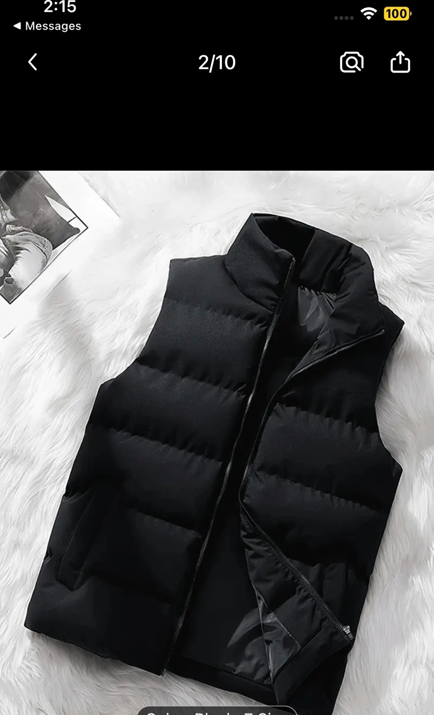 Warm puffer vest. New. Black colour. Zipper closure. Sleeveless. Fit for 168-178 cm tall person pick up close to Cambie Road and Shell Rd.Richmond .cash only $35