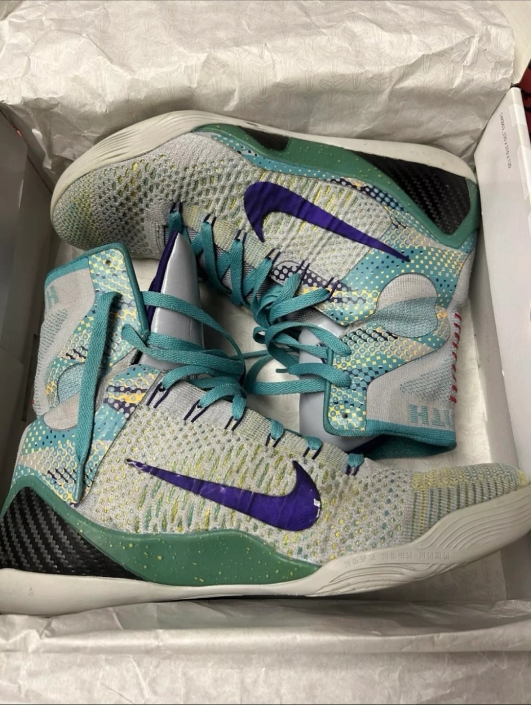 Nike Kobe IX Elite basketball shoes. Size 11.5. Grey, teal, and purple colourway. Knit upper. Comes with original box. Pre-owned. Paid - $310 Open to offers