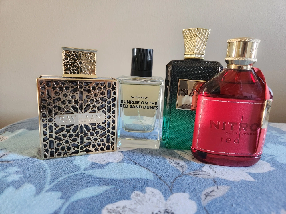 Selling four fragrances: Rayhaan elixir 40$ Zara Sunrise on the Red Sand Dunes 40$ Khadlaj Island 40$ Dumont Nitro Red 40$ Available or delivery in kitchener or pickup.