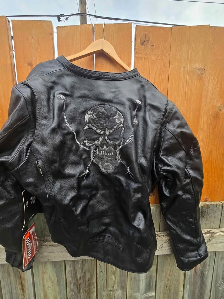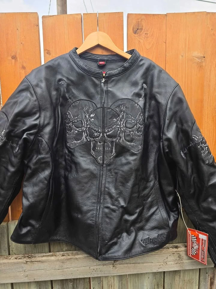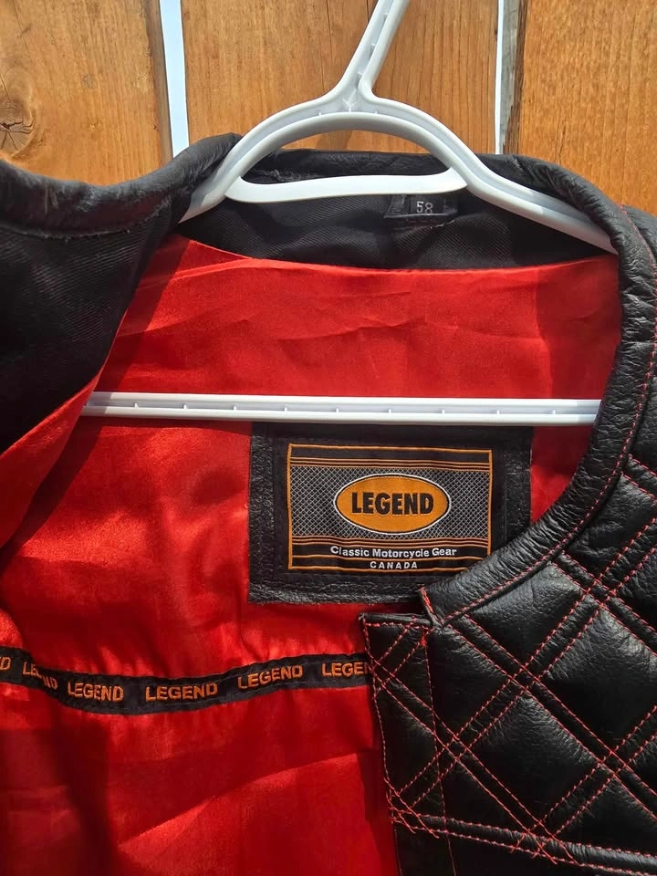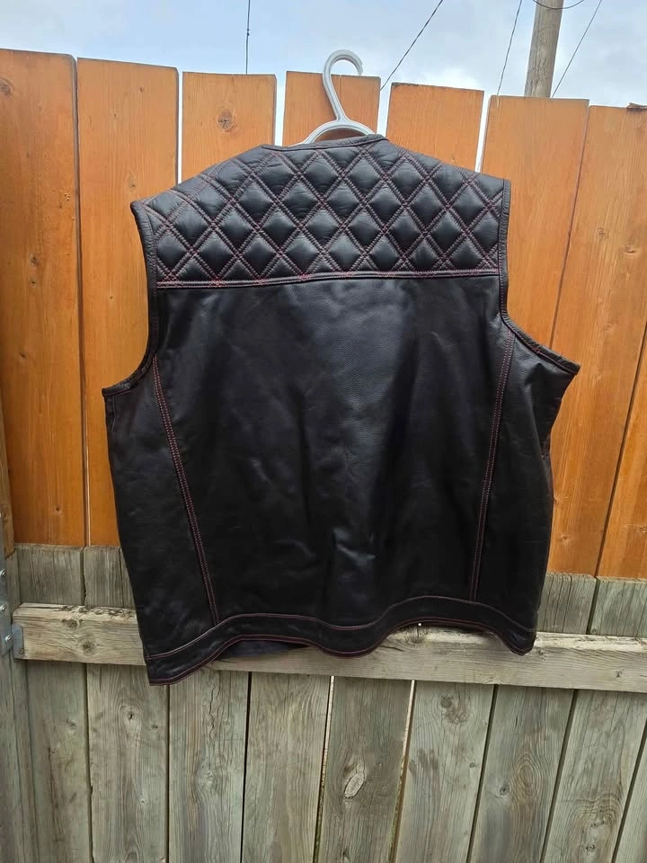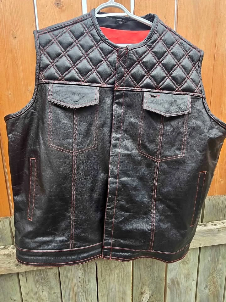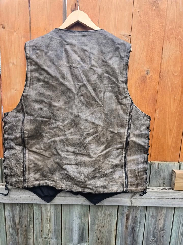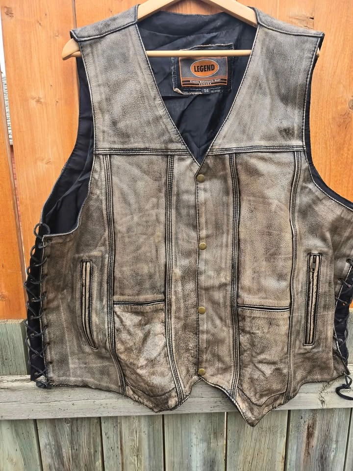 Have a couple of riding vests one is brand new and the other has been worn a bit as well brand new leather jacket never worn has a removable liner and pads Have been in storage and just recently leather treated Please inquire bout prices