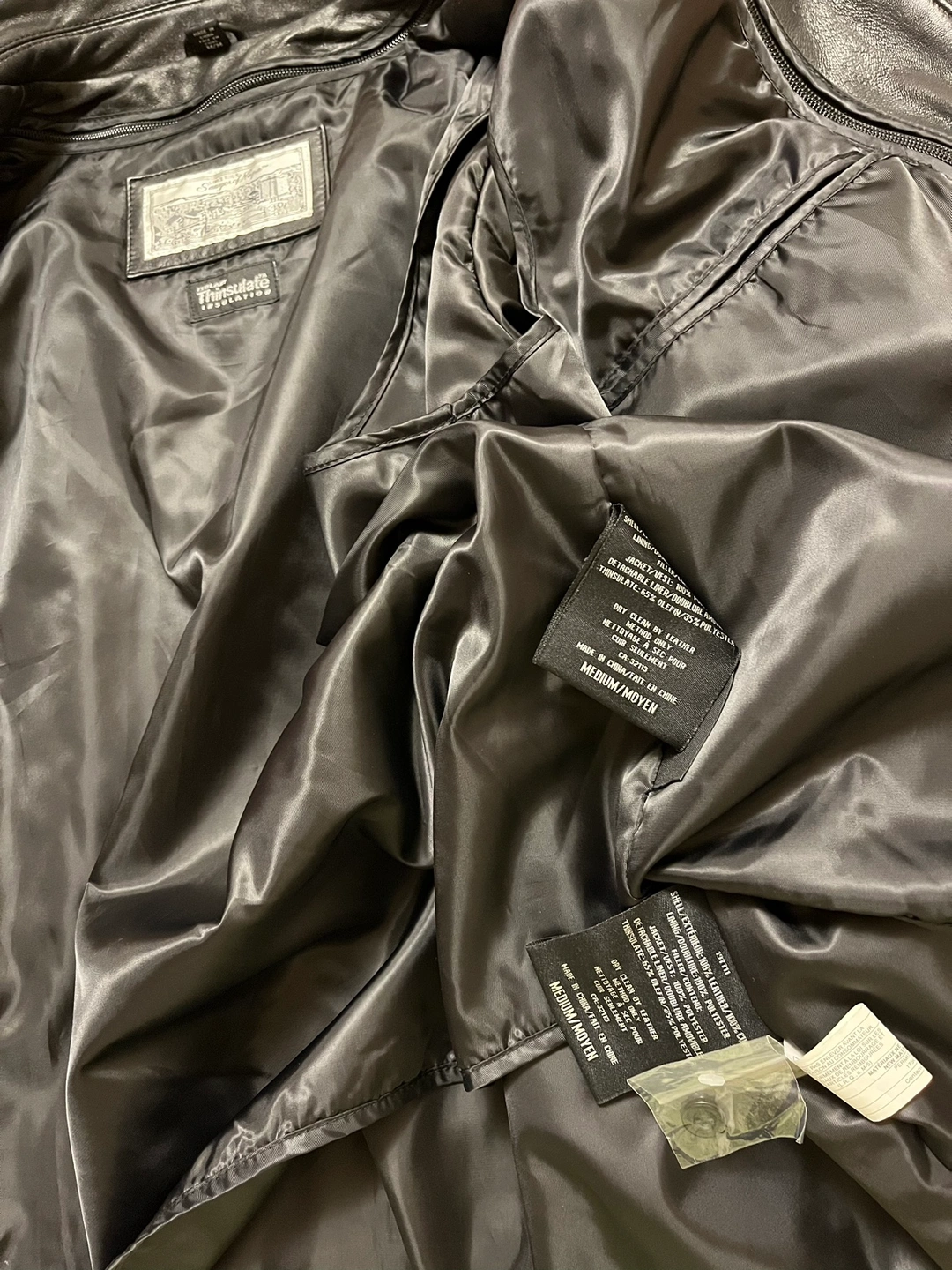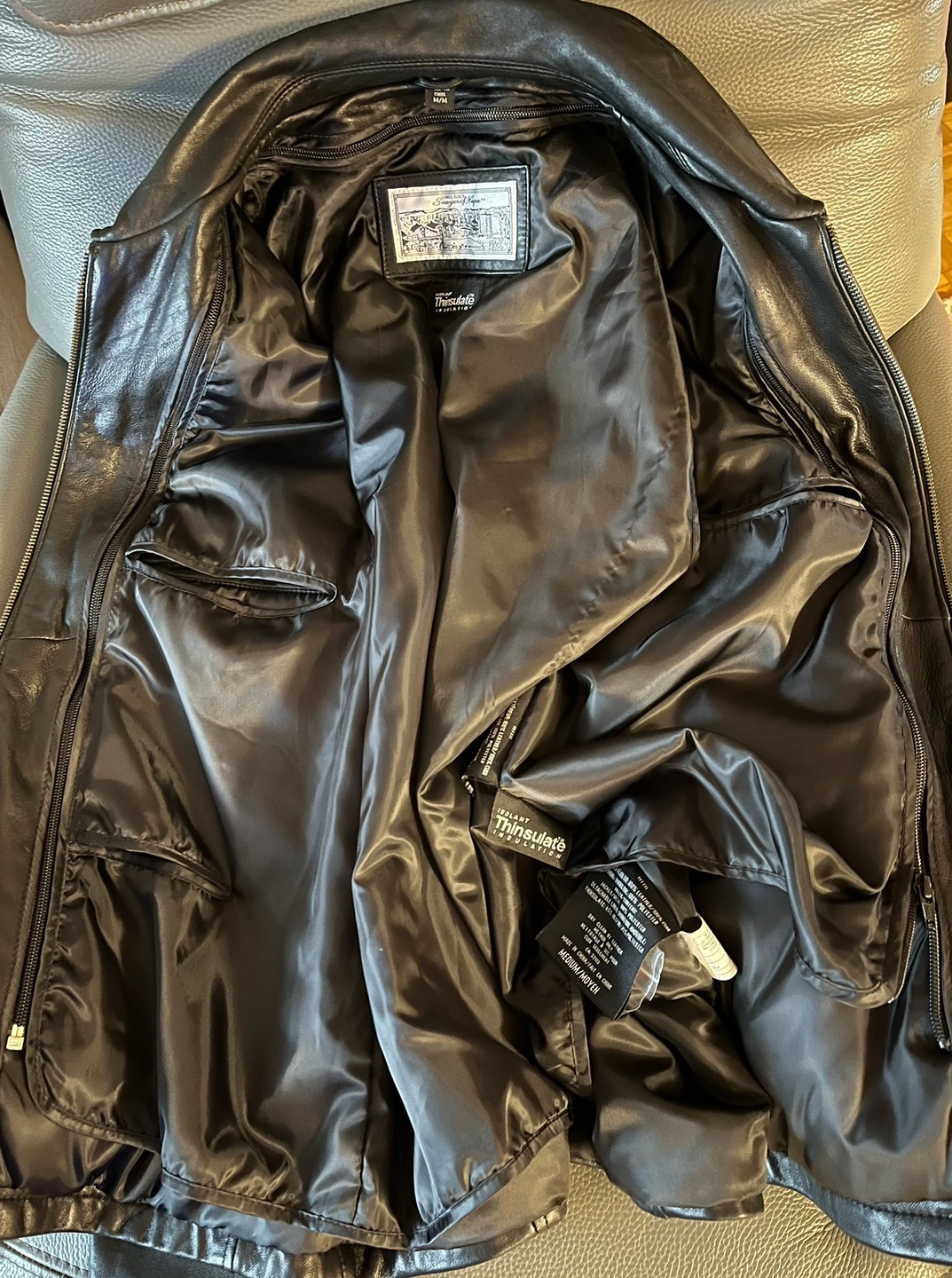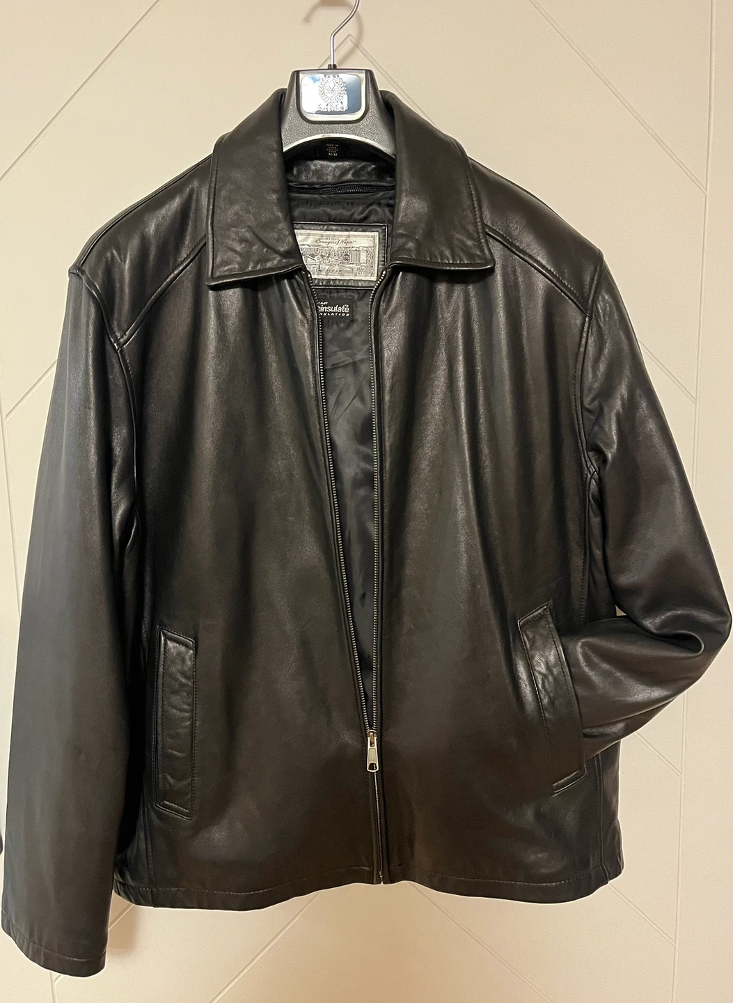 Black leather jacket with zip closure, two front pockets, 3 interior pockets and Thinsulate insulation. Lining can be removed Men Size M In great condition, only worn a couple of times (2 small scratches on the back, hard to notice) Soft leather, classy, never goes out of style Pick up Bloor and Islington Etobicoke