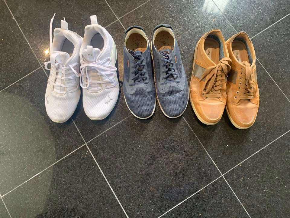 Variety of Men's Shoes. All sizes 8-9. $20 each. Puma White Soft Foam (9) Geox Respira Blue (8) Steve Madden Brown Leather (8.5)