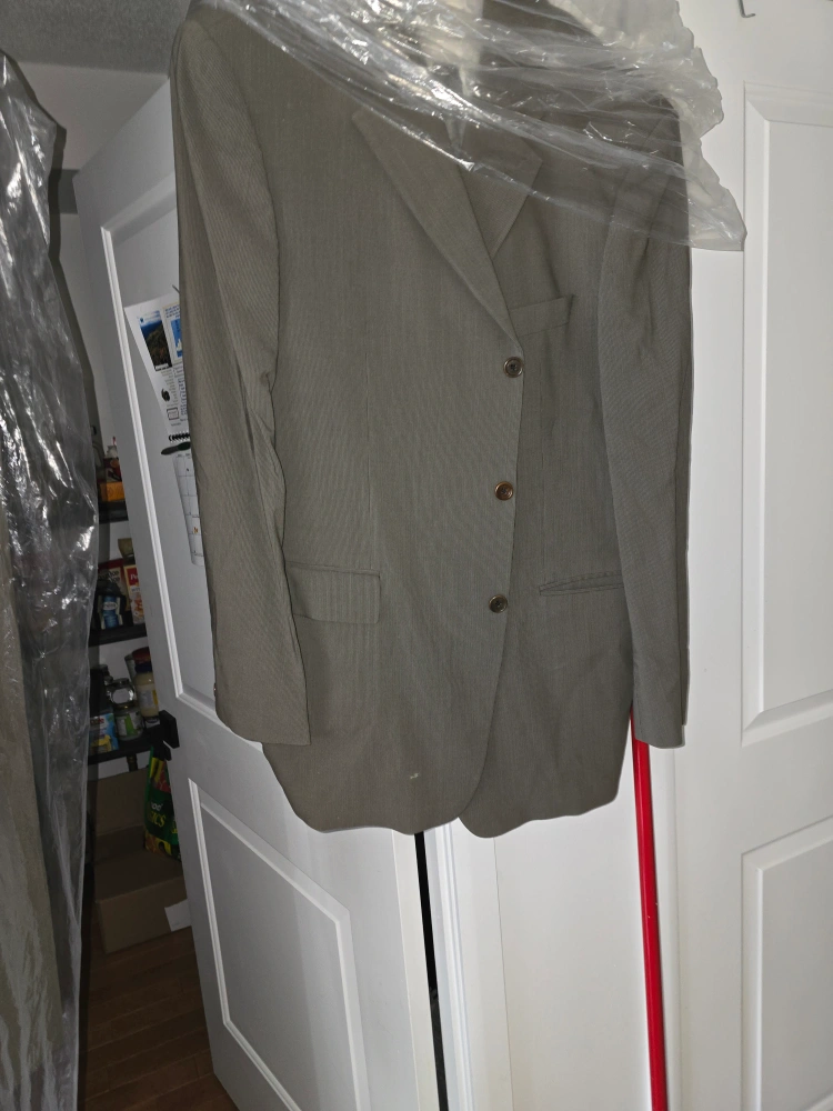 Selling a suit jacket and pants set in good condition. Perfect for work or special occasions. The material is a light colour, and the set is ready to wear [ Hugo Boss ]