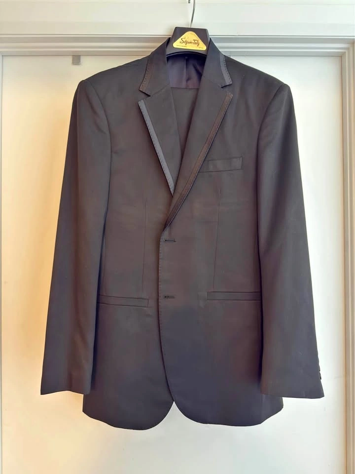 Custom tux, no tags but fits 32/34 waist and 34 length (roughly). Blazer fits large.