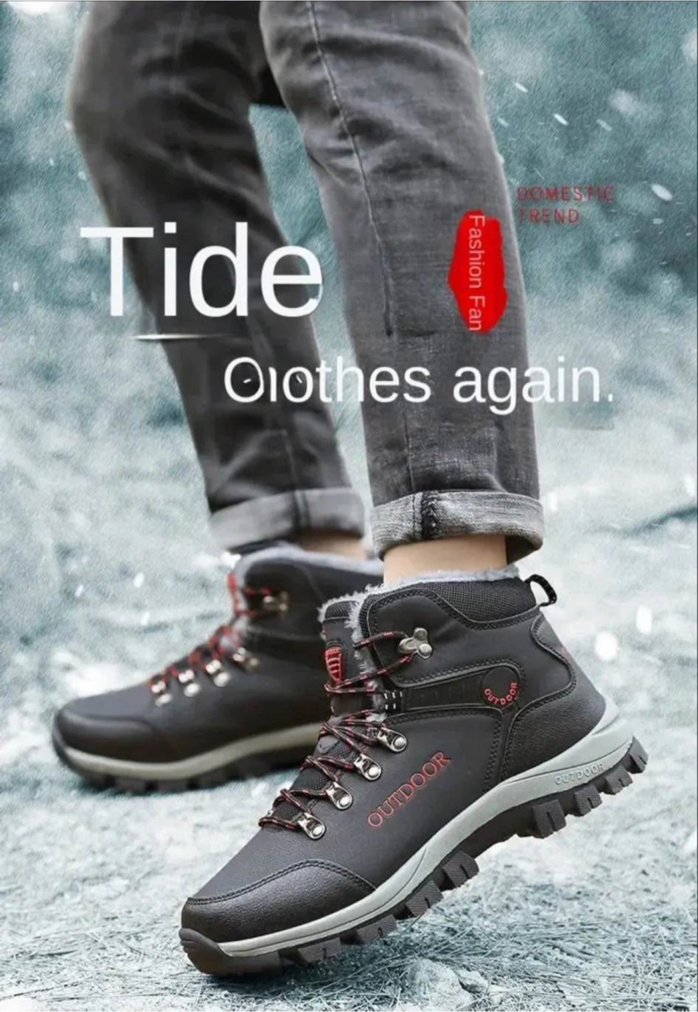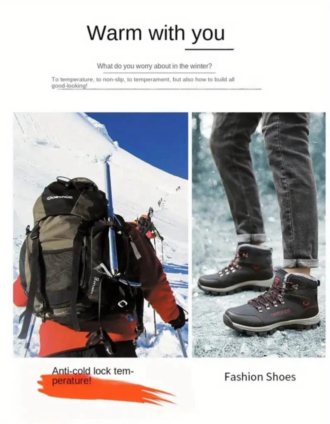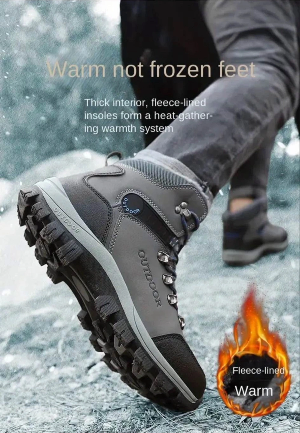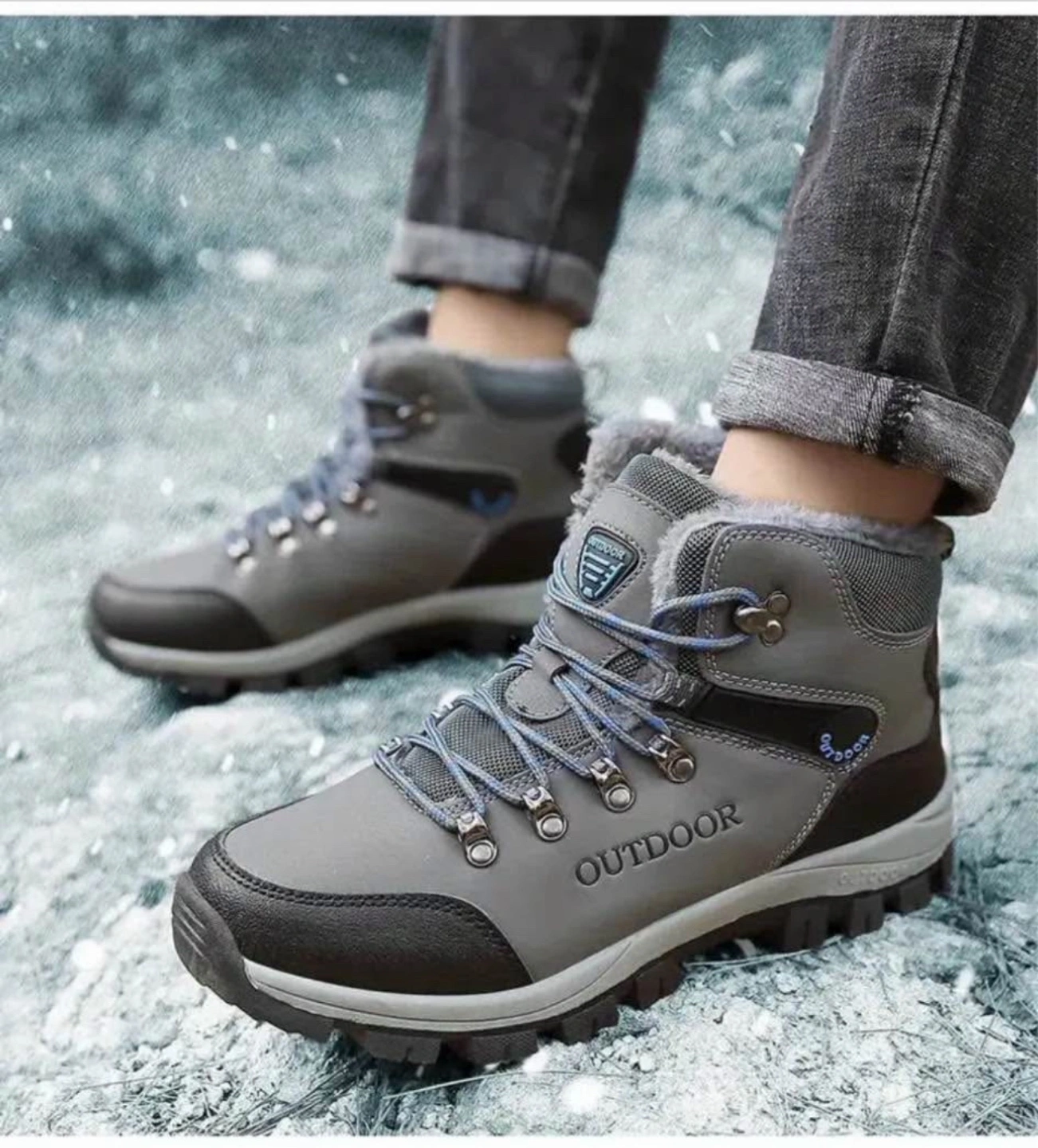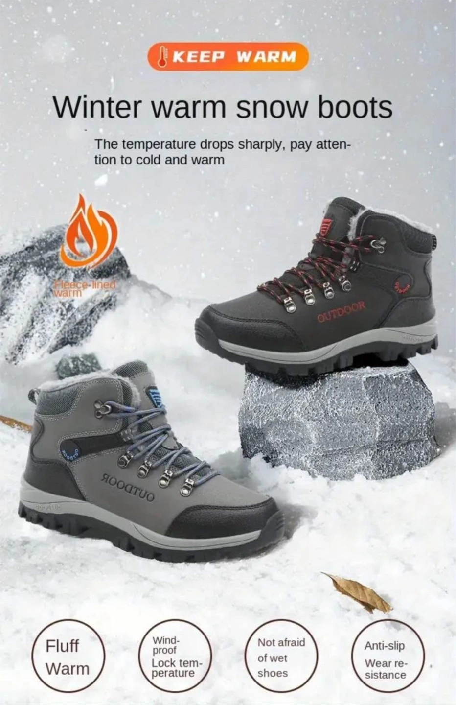 Men's Winter Snow Boots Thermal Waterproof Short Hiking Shoes with Lace-Up & Hook Loop Fastener, Fabric Insole & Lining, Rubber TPR Sole, Universal Outdoor Camping Footwear