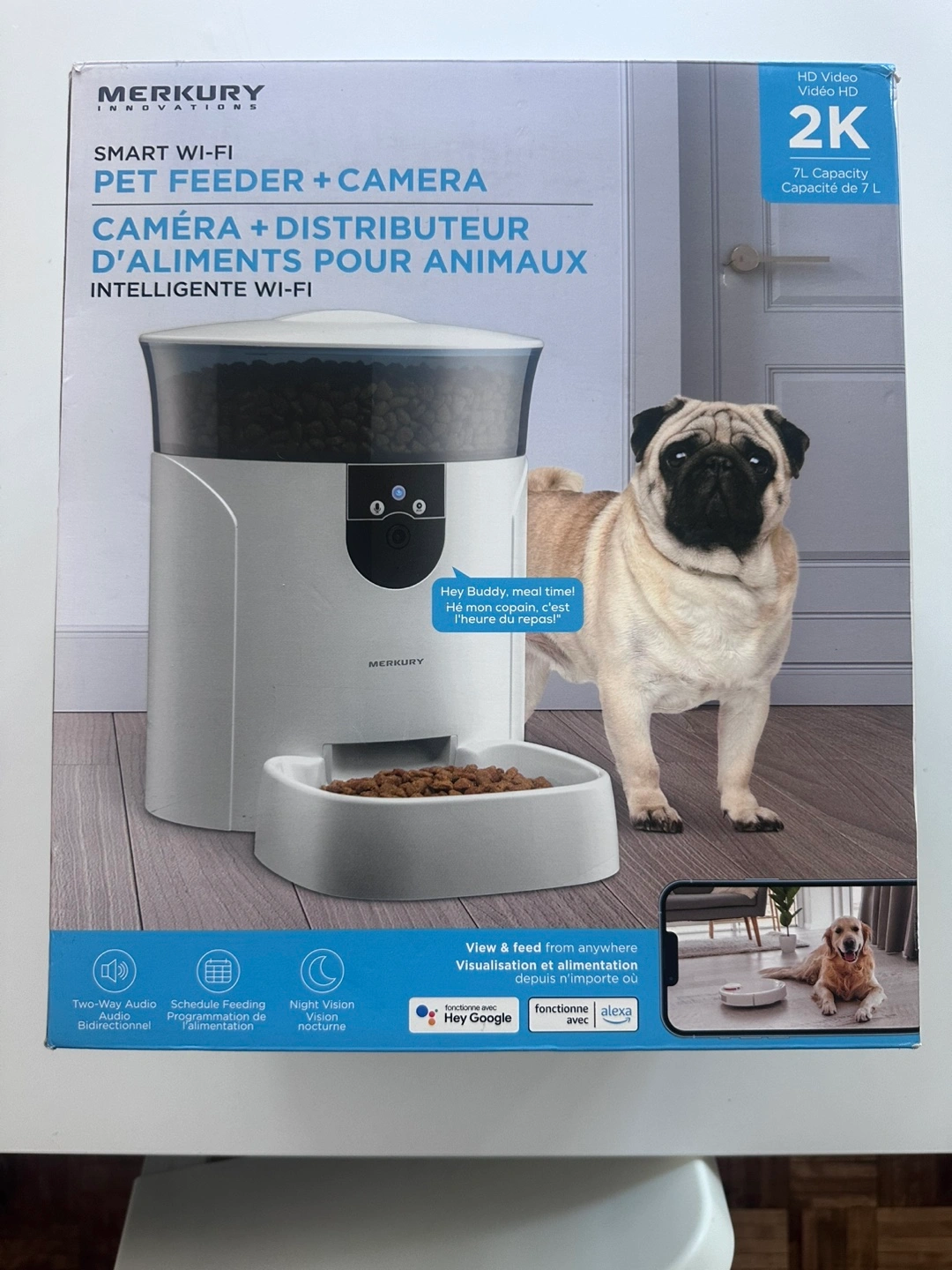 7L capacity. Smart Wi-Fi pet feeder with camera. Schedule feeding. View and feed from anywhere. Two-way audio. Night vision. Compatible with Alexa and Google Assistant.
