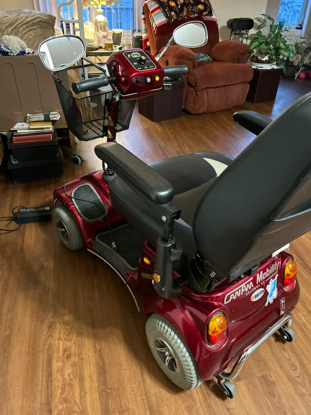 Selling a Merits CanAm Mobility scooter. It has a basket, mirrors, and a comfortable seat. Great for getting around!