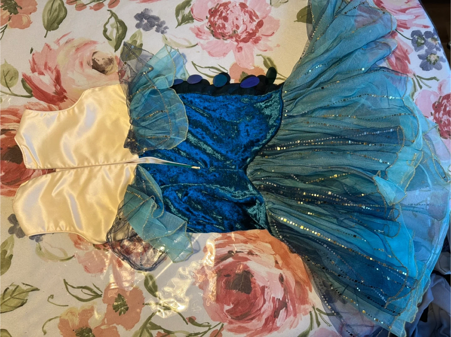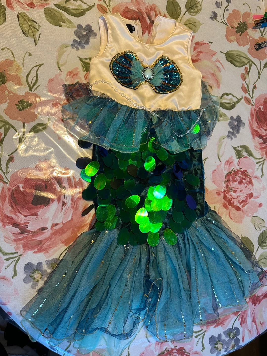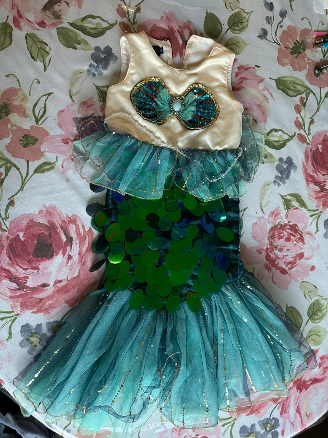 Cute mermaid costume for your little one! The costume is in great condition and has a beautiful design with sequins and ruffles. It's perfect for dress-up or Halloween! Size 100