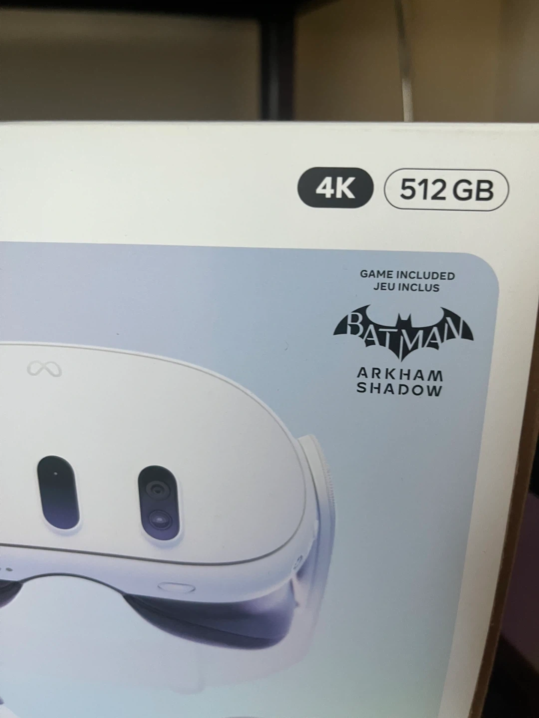Selling a Meta Quest 3 VR headset with 512GB of storage. Includes the controllers and original box. There's even a game included: Batman Arkham Shadow!
