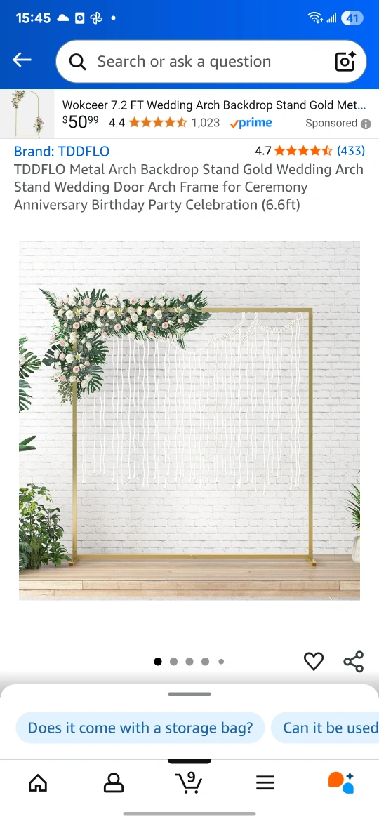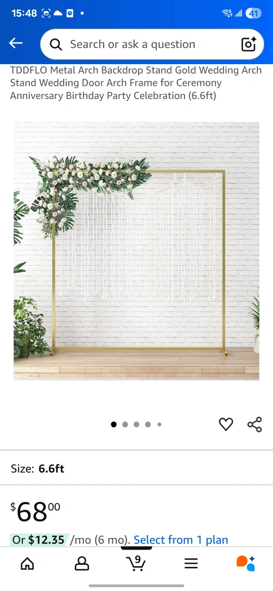 Selling a TDDFLO metal arch backdrop stand in gold! each bar is 14.5 inches in size and perfect for weddings, birthdays, or any celebration