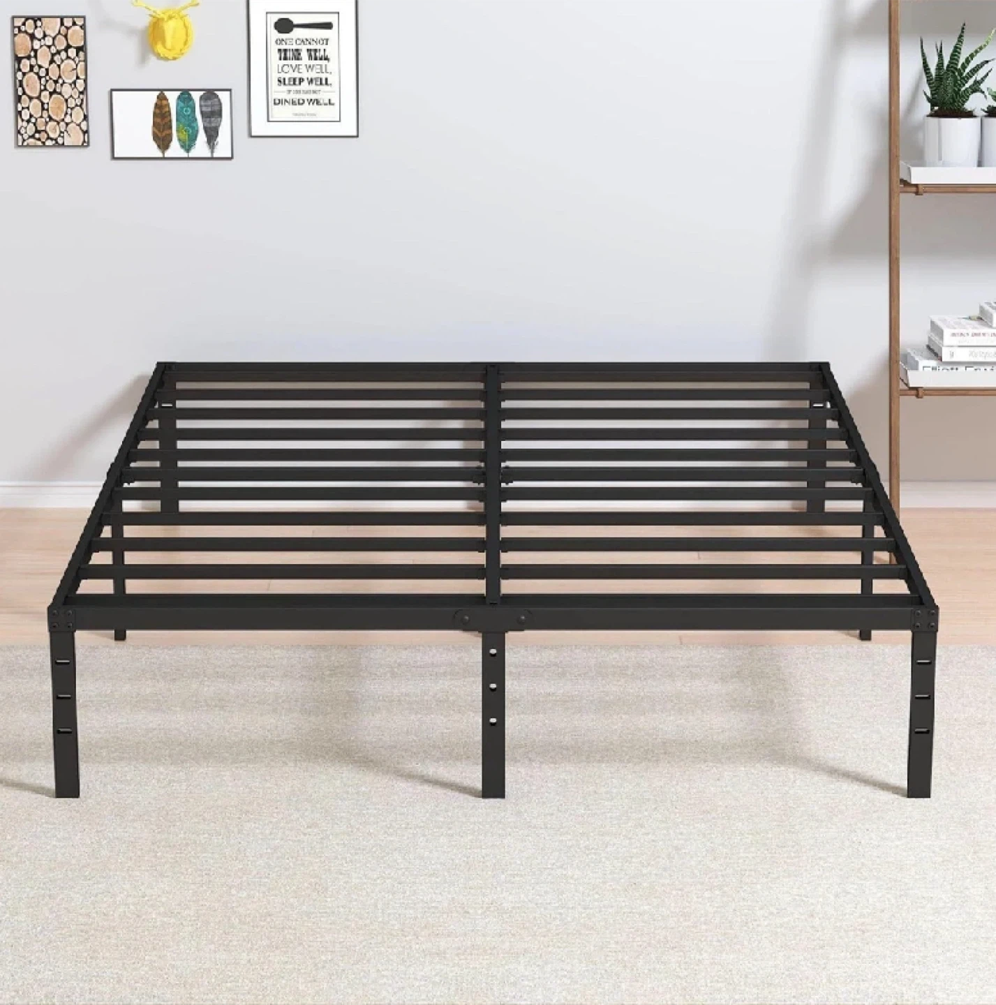 Full size a metal bed frame in black. It's sturdy and provides great support for your mattress. Easy to assemble and disassemble, making it convenient for moving. Perfect for any bedroom!