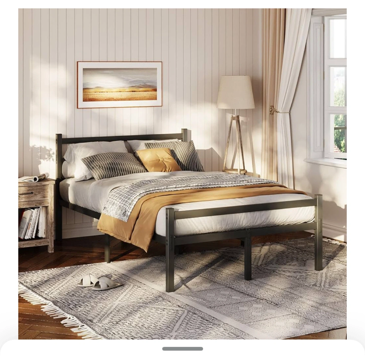 Selling a metal bed frame! This sturdy frame is perfect for any bedroom and provides excellent support. It's in great condition and ready for a new home. Easy to assemble and disassemble for moving