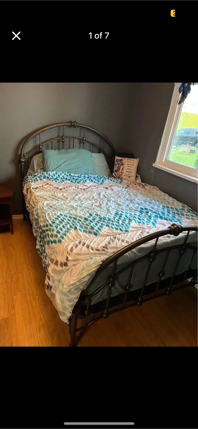 Selling a queen-size metal bed frame. It's in good condition and ready for a new home! Perfect for adding a touch of classic style to any bedroom Was over $600 Sale price $427 Price is FIRM Pu 252 st Maple Ridge 🌟CASH ONLY