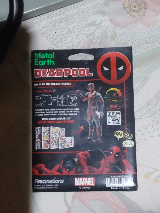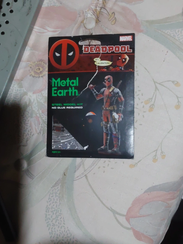 Build your own Metal Earth Deadpool model! This steel model kit requires no glue and is suitable for ages 14+. It comes with detailed instructions to guide you through the assembly process. A fun project for any Marvel fan! Slight tear in packaging, but has never been opened.