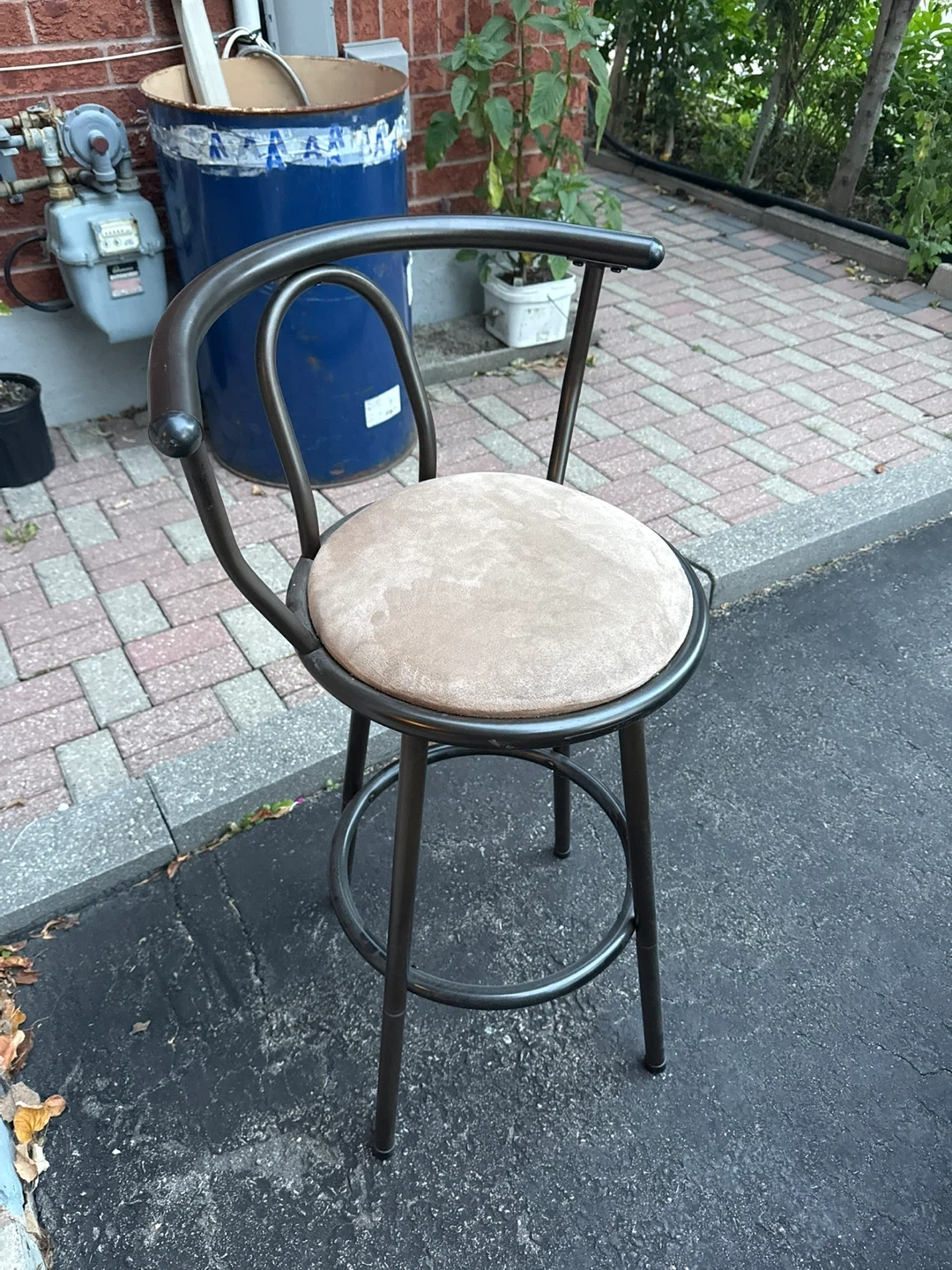 Selling a bar stool with a dark metal frame and a comfortable cushioned seat. It's in good condition and would be a great addition to any kitchen or bar area Only one