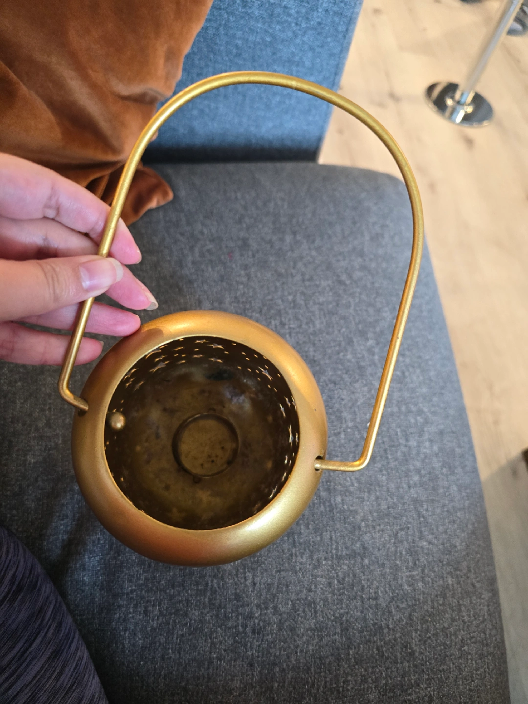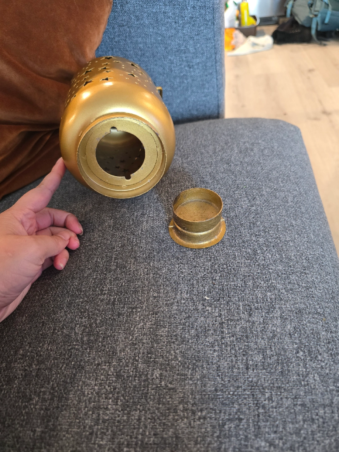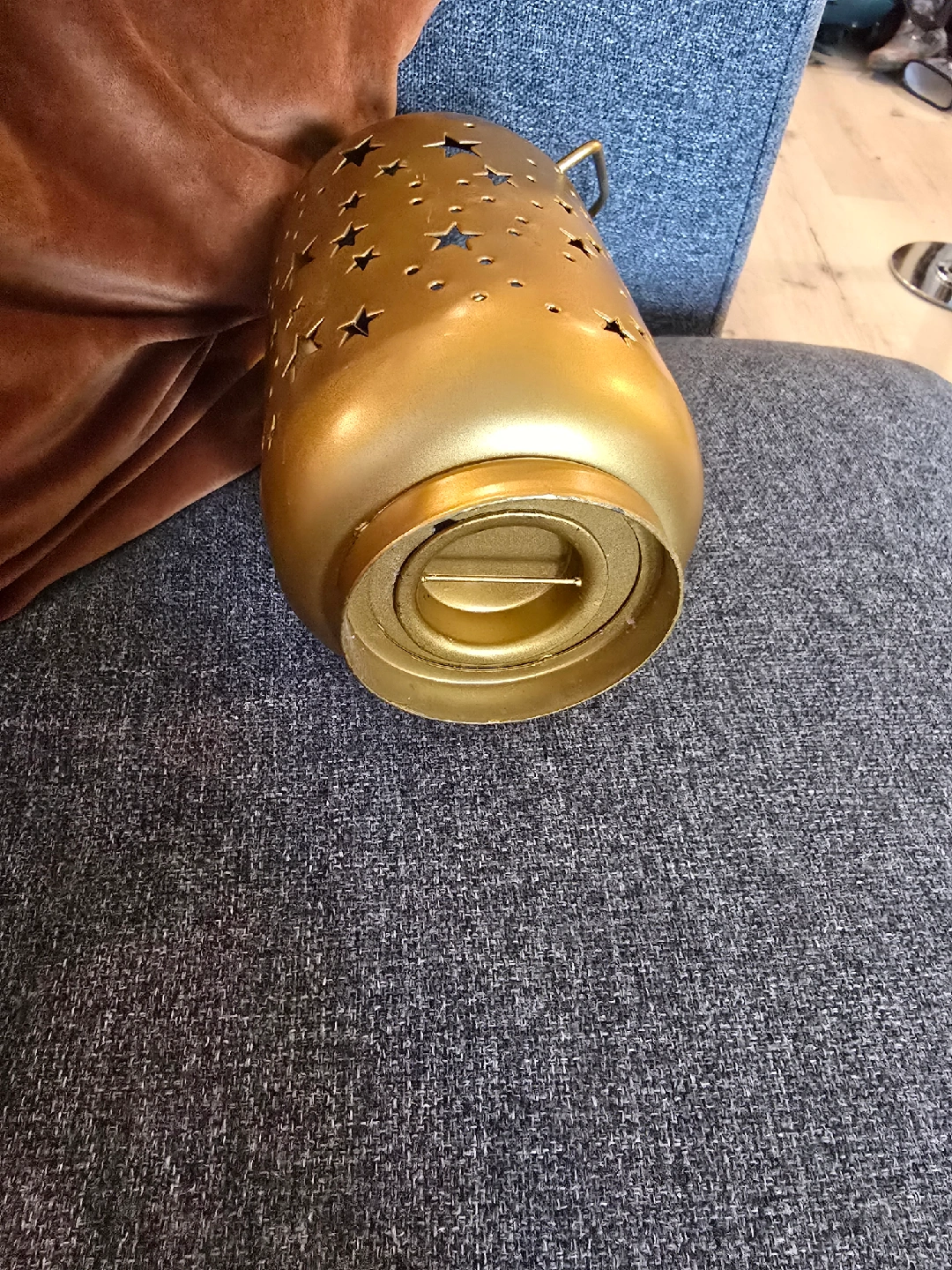 Selling a metal gold star lantern! It has a handle for easy carrying or hanging. The lantern has star and circle cutouts that create a lovely light pattern. Perfect for adding a touch of whimsy to any room, cozy fall vibes or cute halloween night skies! bottom screws out for easy candle removal. could use a little clean but otherwise in great condition!
