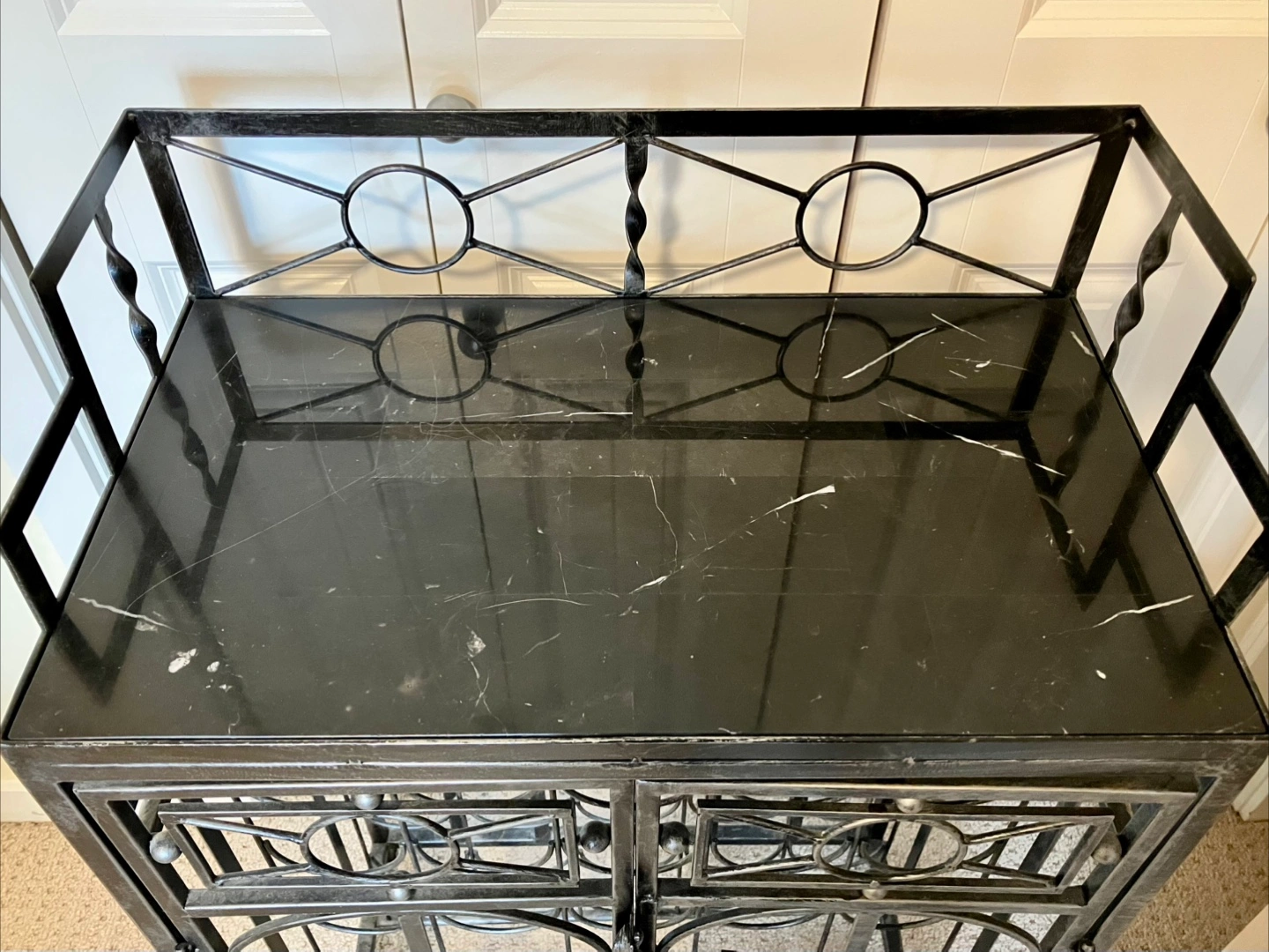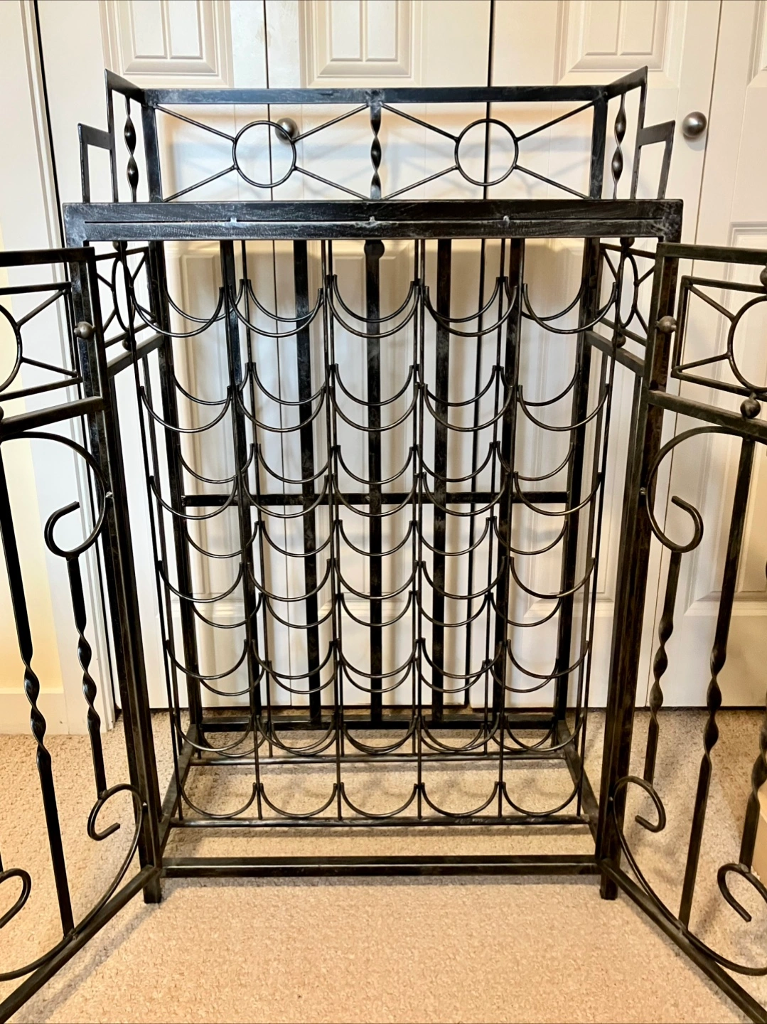 Selling a sturdy metal wine rack cabinet which can hold 35 regular sized bottles. The doors can be locked, preventing sneaky persons from messing with your stash. Don’t delay, upgrade your rack today!!