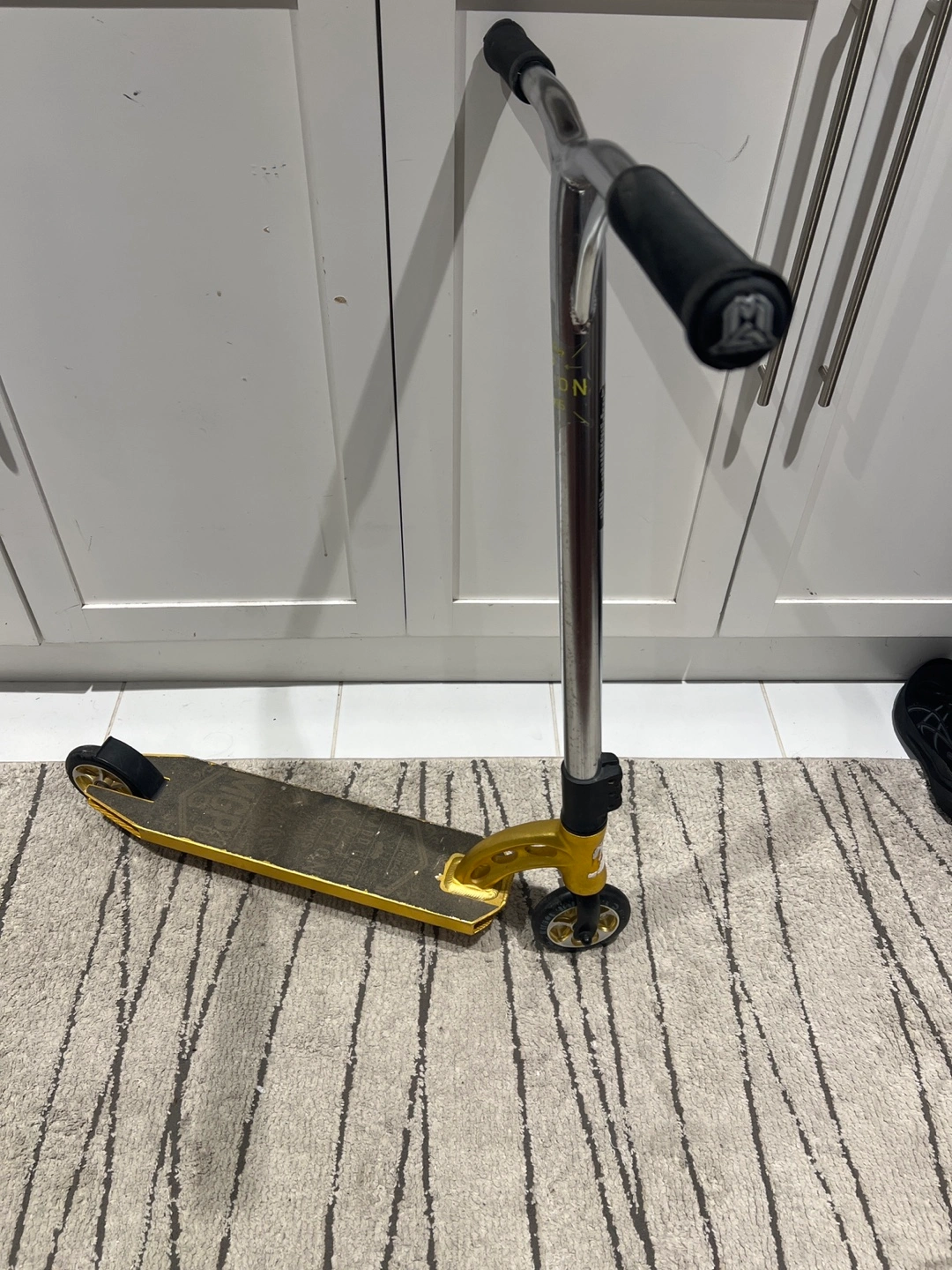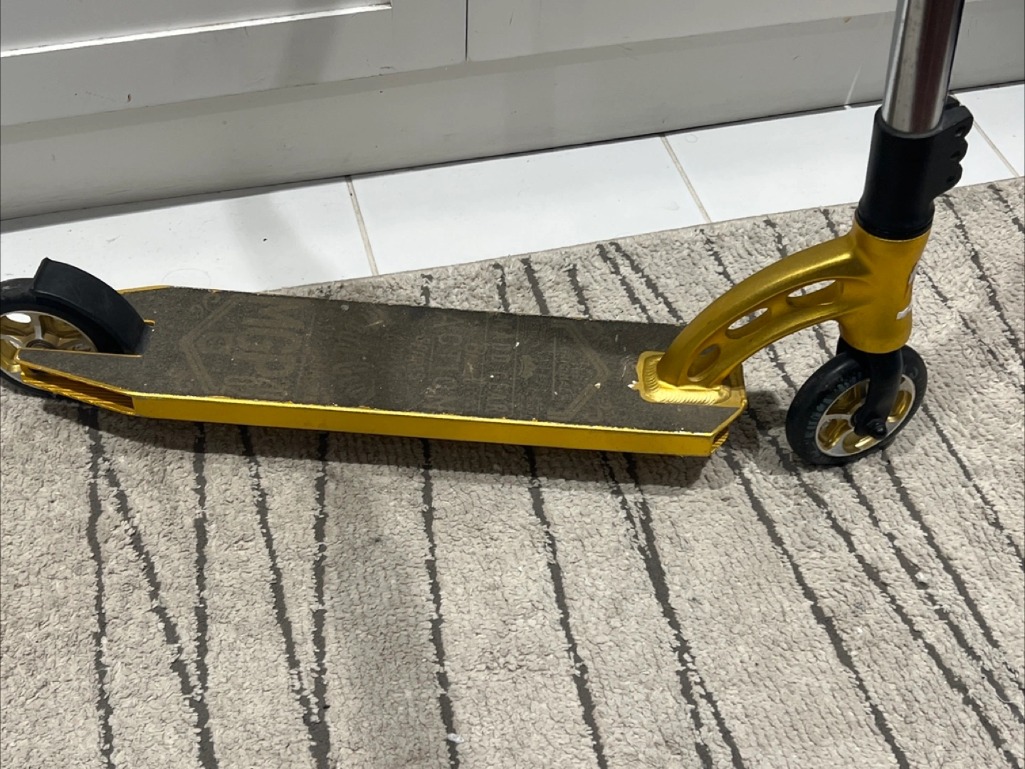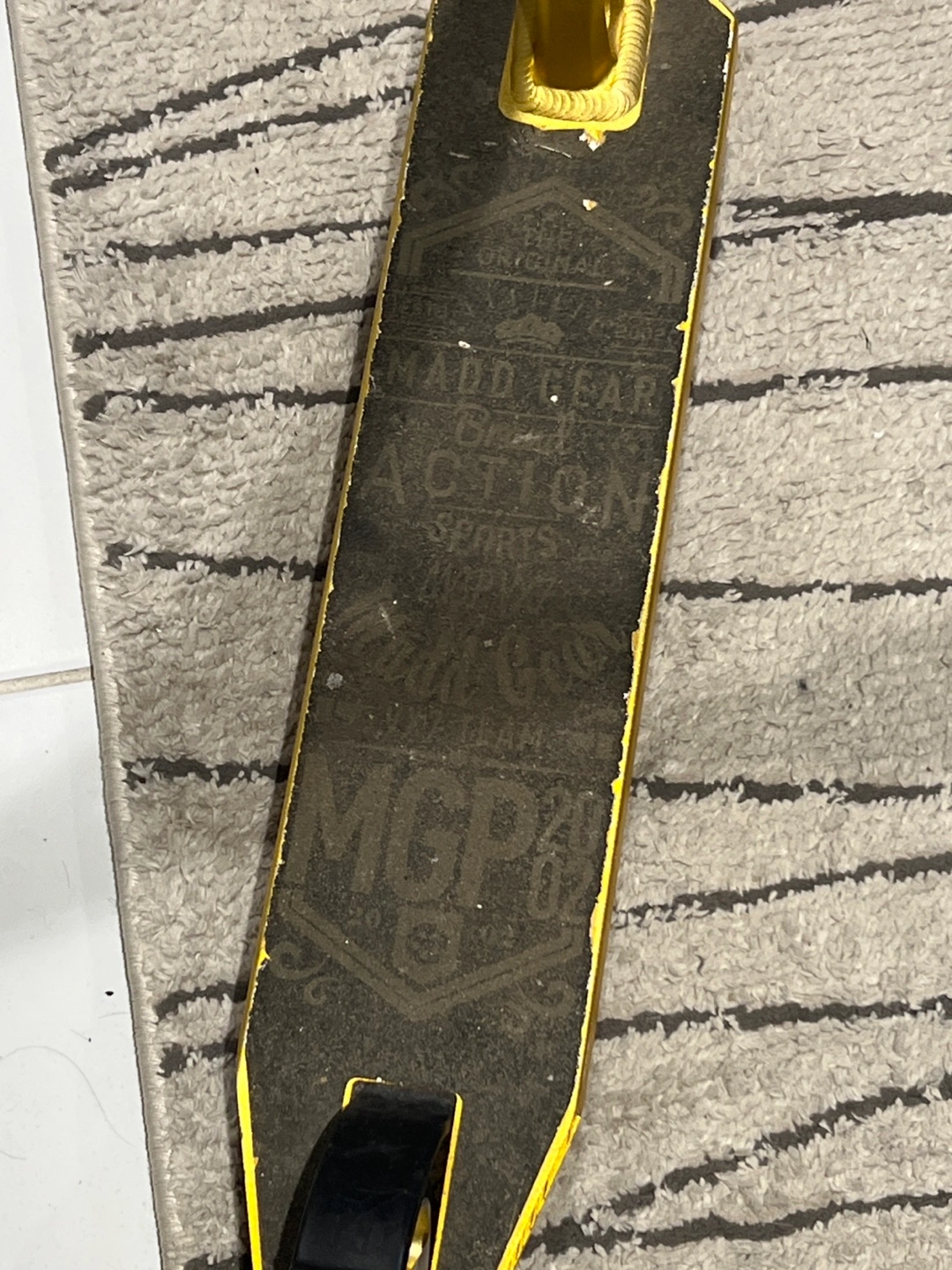 Selling a used MGP Team Edition scooter. It's gold and silver. It does show signs of wear on the deck, but is otherwise in good condition. Great for hitting the skate park!