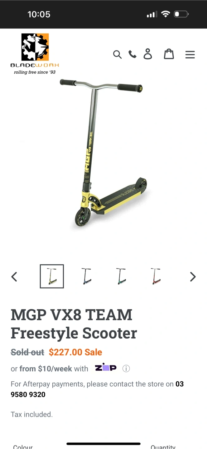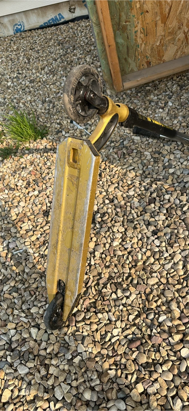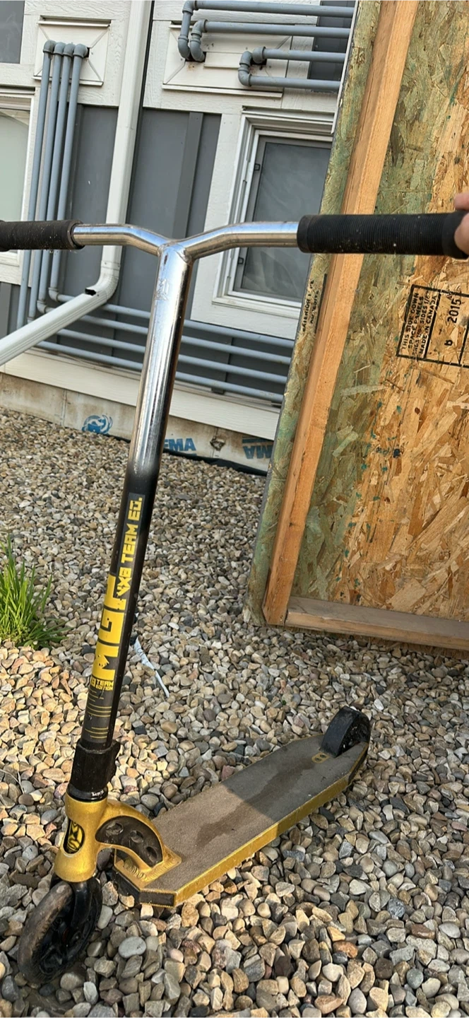 Selling a used MGP VX8 Team Freestyle Scooter in gold. It has some wear and tear, but it's still in good working condition. Originally sold for $227.