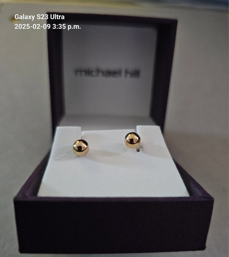 Pair of gold ball stud earrings. Presented in a Michael Hill box.