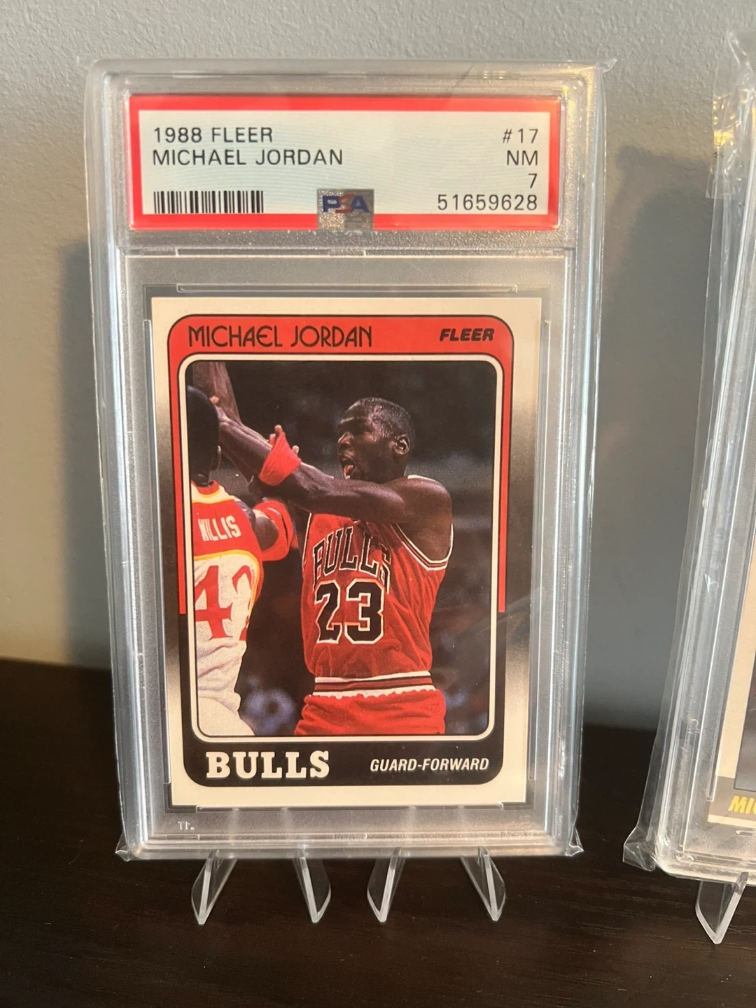 Selling a collection of Michael Jordan trading cards. Includes: 1988 fleer Michael Jordan 17 psa 7 - $130 1987 fleer Michael Jordan 59 PSA 9 - $3,000 1991 skybox Michael Jordan 39 PSA 9 - $50 2023 Skybox Michael Jordan D.G 9.5 - $60 Open to offers. Pick Up: Cambridge, Ont Regular Shipping: $5 (up to 2 slabs) + $1 each additional Tracked: $15 anywhere in Canada Shipping ONLY available if you are in a FB card group & can provide Vouchers. X - posted