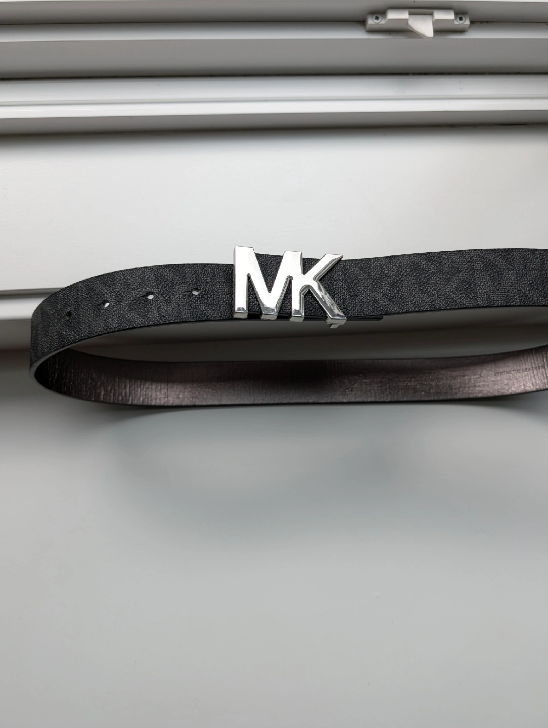 Selling a Michael Kors belt in charcoal black. It features the iconic MK logo as the buckle. It's in great condition and ready for a new home!