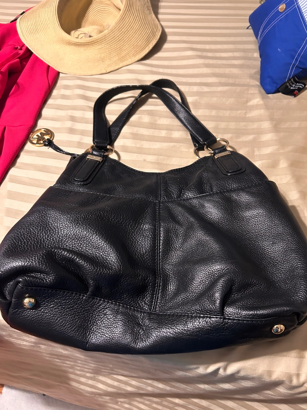 Selling a gently used Michael Kors black leather hobo bag. It's in good condition and has lots of space inside. Perfect for everyday use!