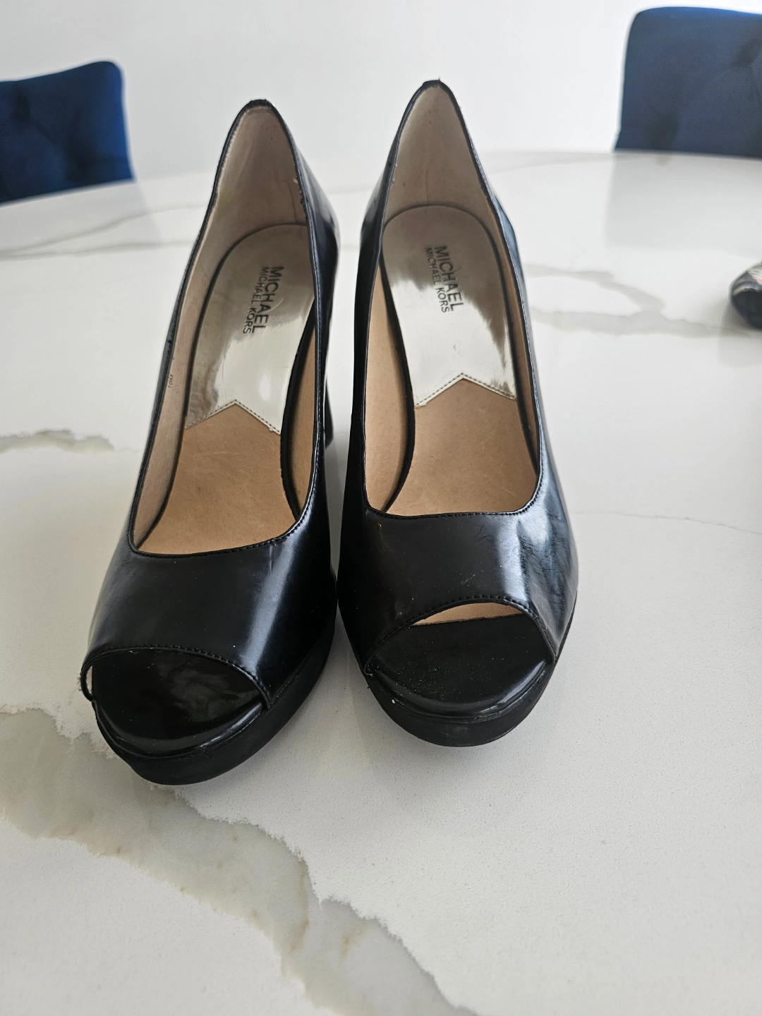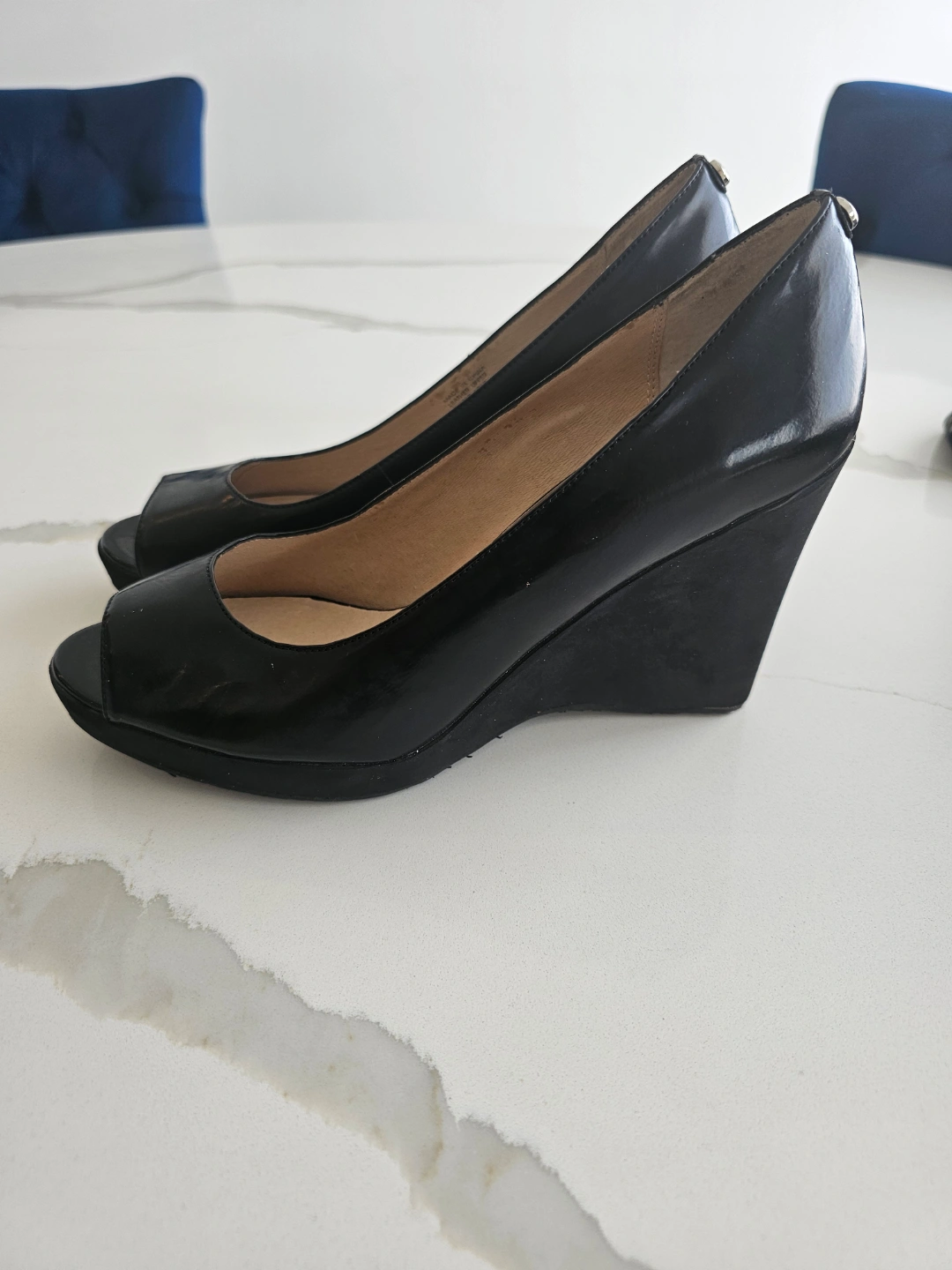 Michael Kors Black Leather Peep-Toe Wedge Heels