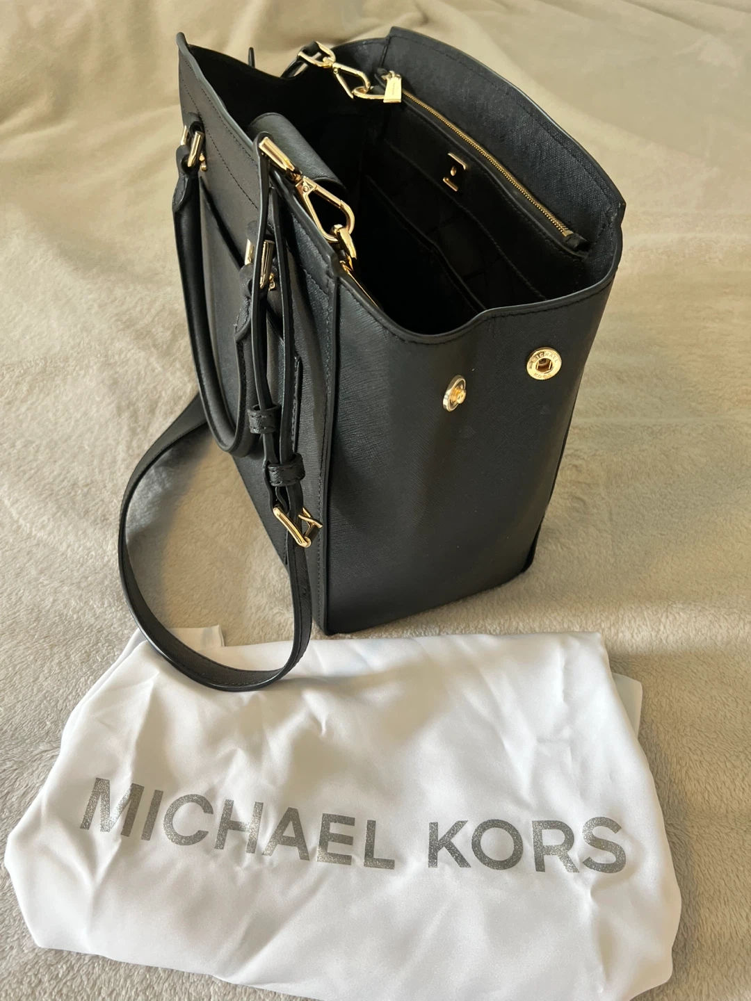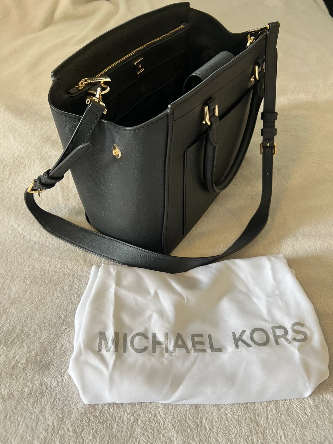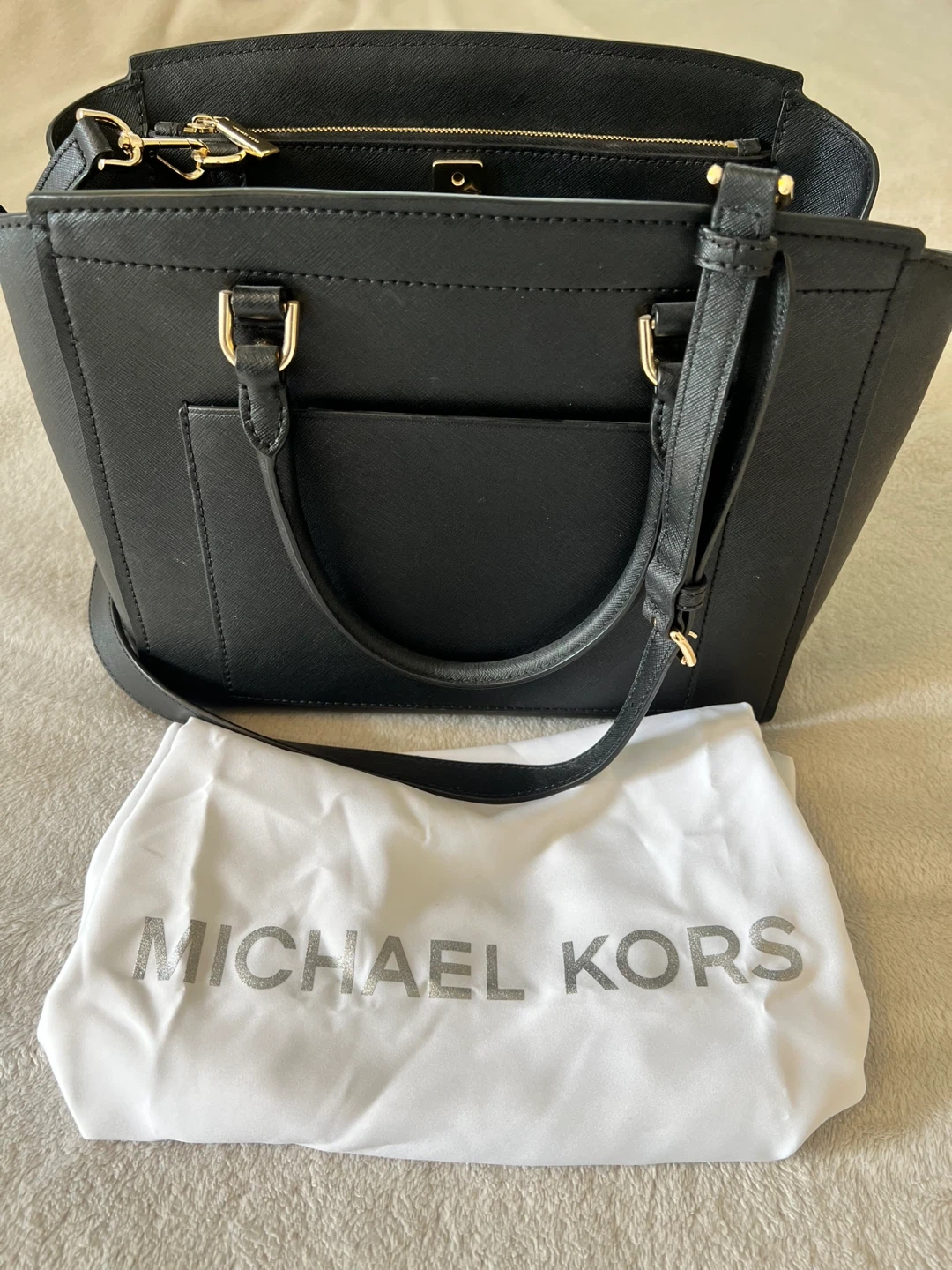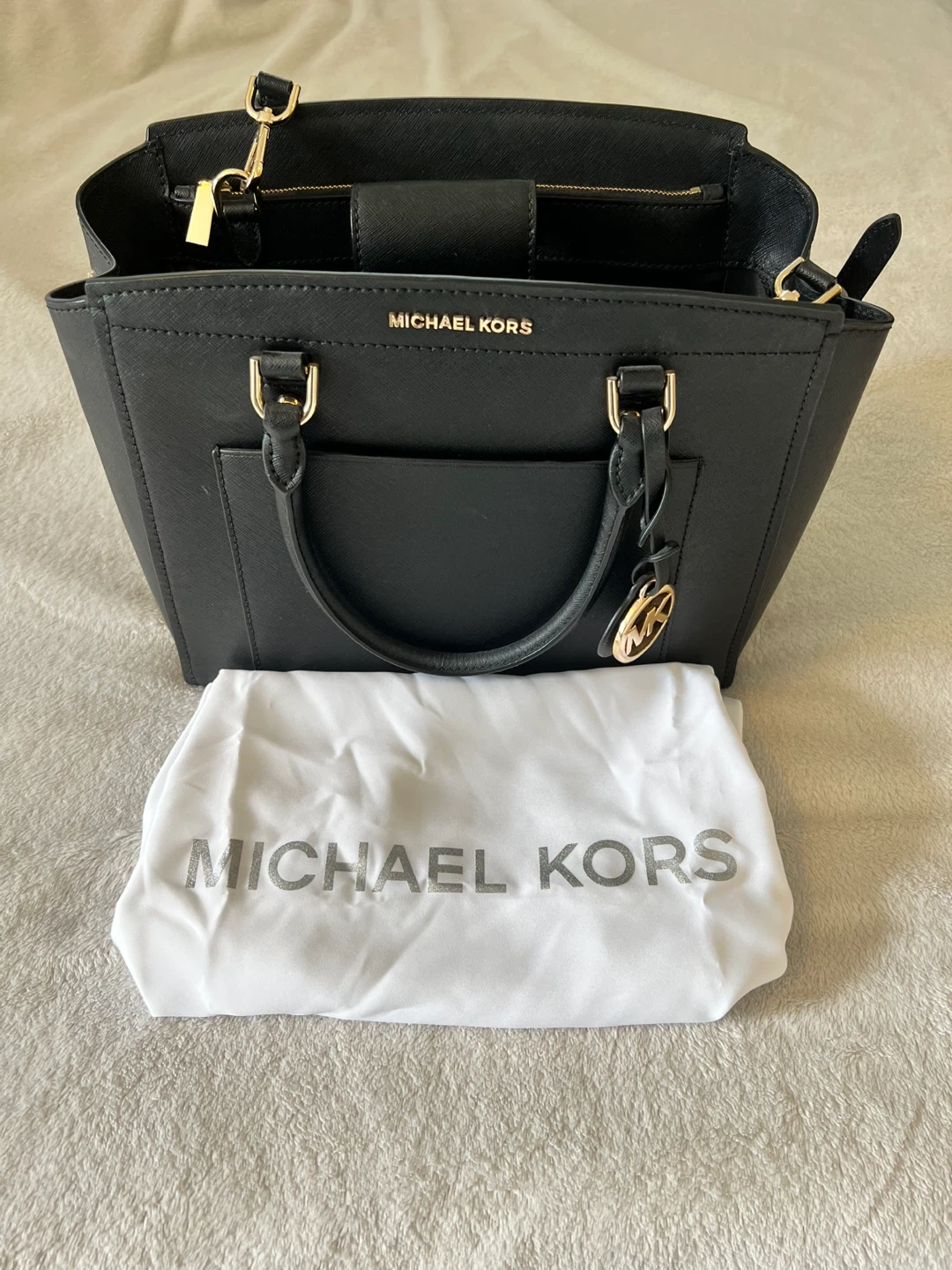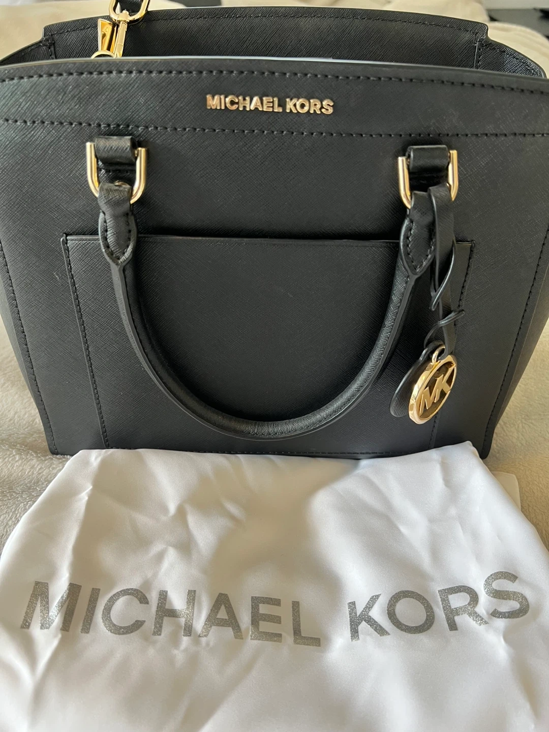 Selling a stylish Michael Kors black leather satchel. It's in great condition and comes with its original dust bag. Perfect for everyday use or a night out! I only used this purse twice, in good condition.. looking for a new home :)