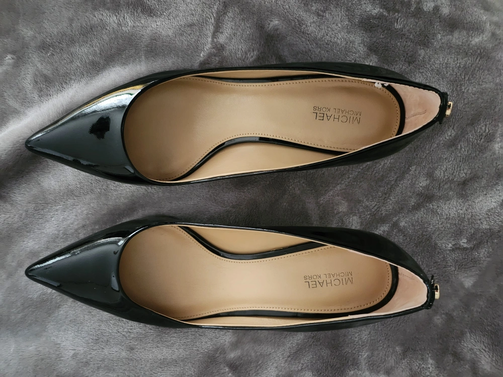 Selling a pair of Michael Kors heels in black patent leather. They're a size 8 1/2 and would be a great addition to your wardrobe! The heels are in great condition and have a classic, stylish look