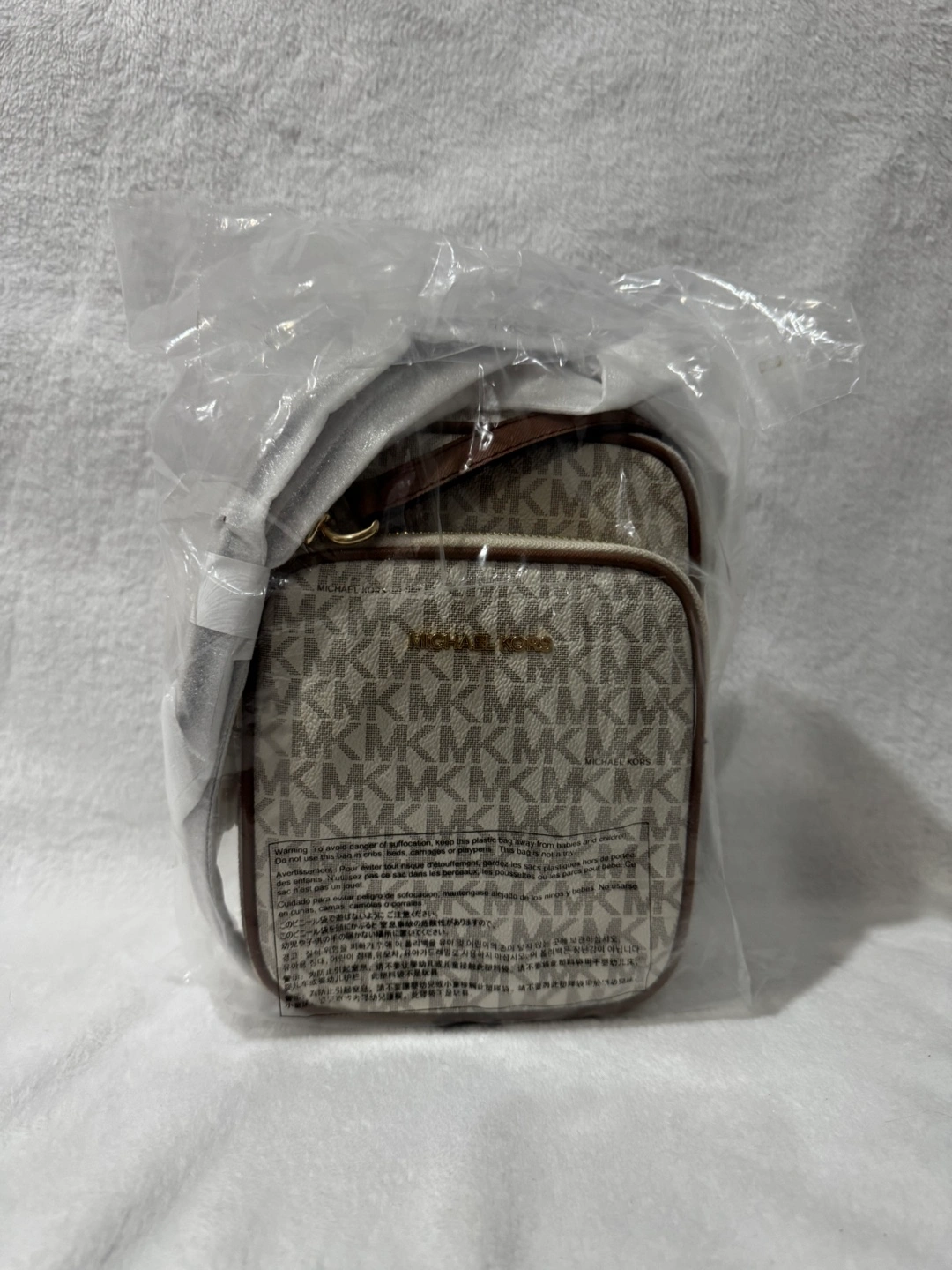 All items are available on hand. Save yourself the hassle to go to the stores! Check out this stylish Michael Kors crossbody bag! It's perfect for carrying your essentials while keeping your hands free. The bag features the classic MK logo pattern and a convenient chain detail. It's ready for a new home! White- available Black- available Brown- SOLD