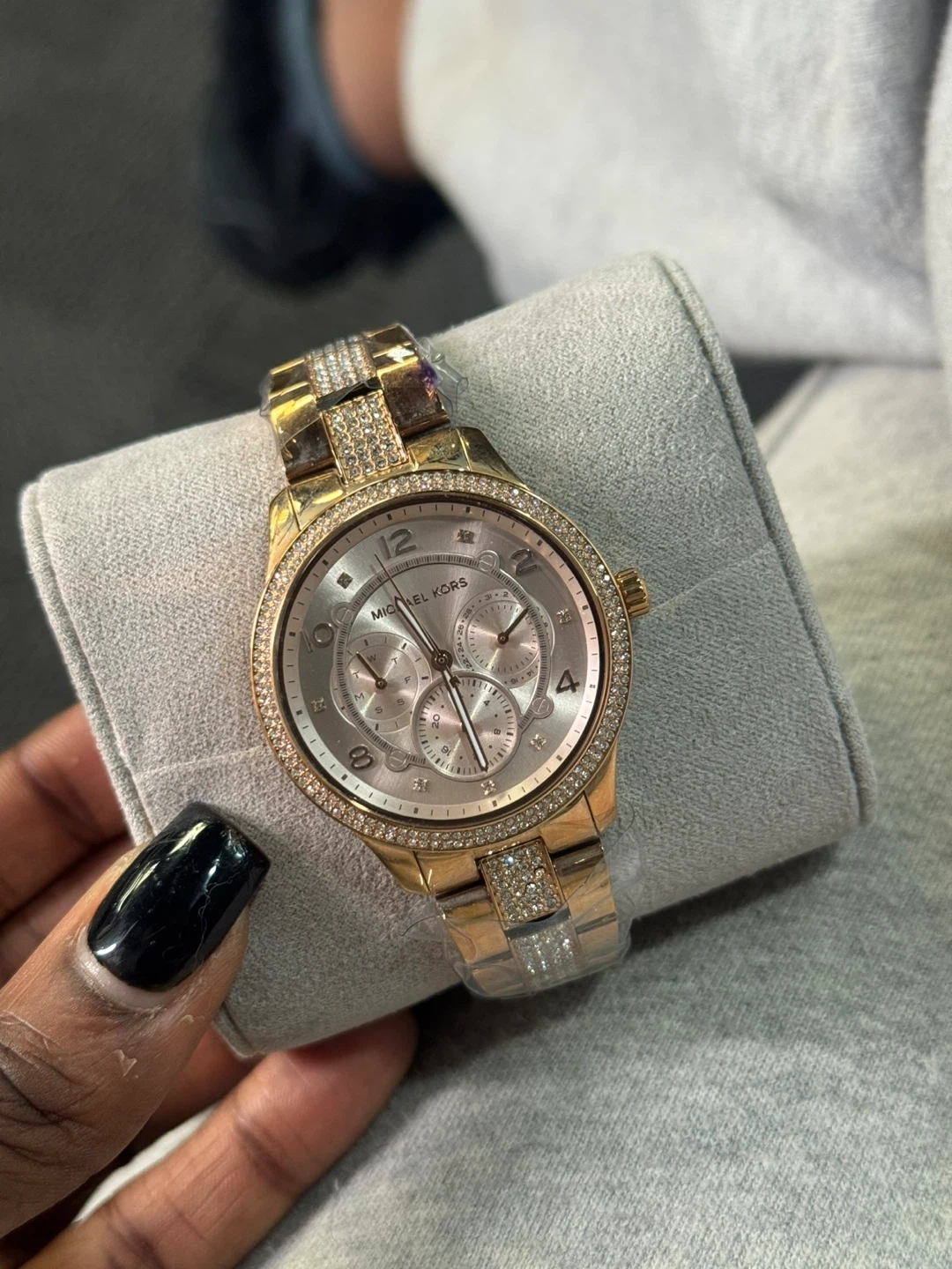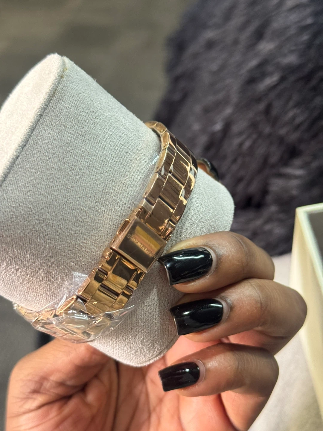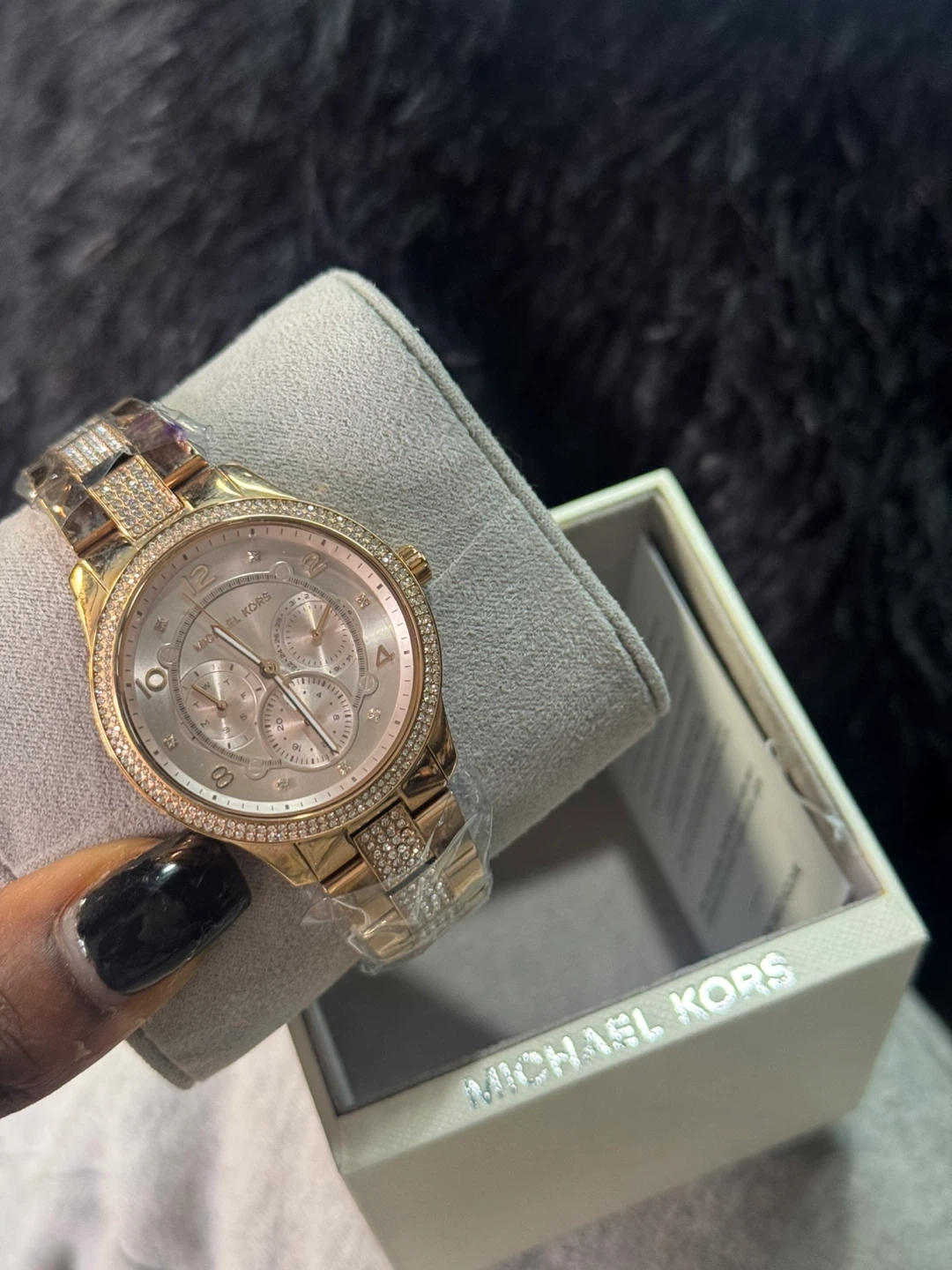 Selling a beautiful Michael Kors gold watch. It comes with the original box. It's in great condition never and ready for a new owner! Got as a gift unsure of the size