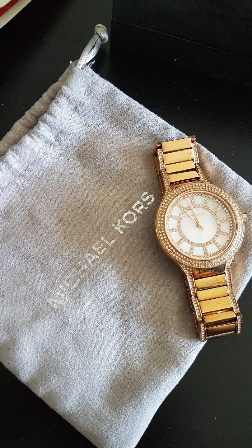 Selling a beautiful Michael Kors women's watch in gold. It features a stunning design with crystal accents. Comes with the original pouch