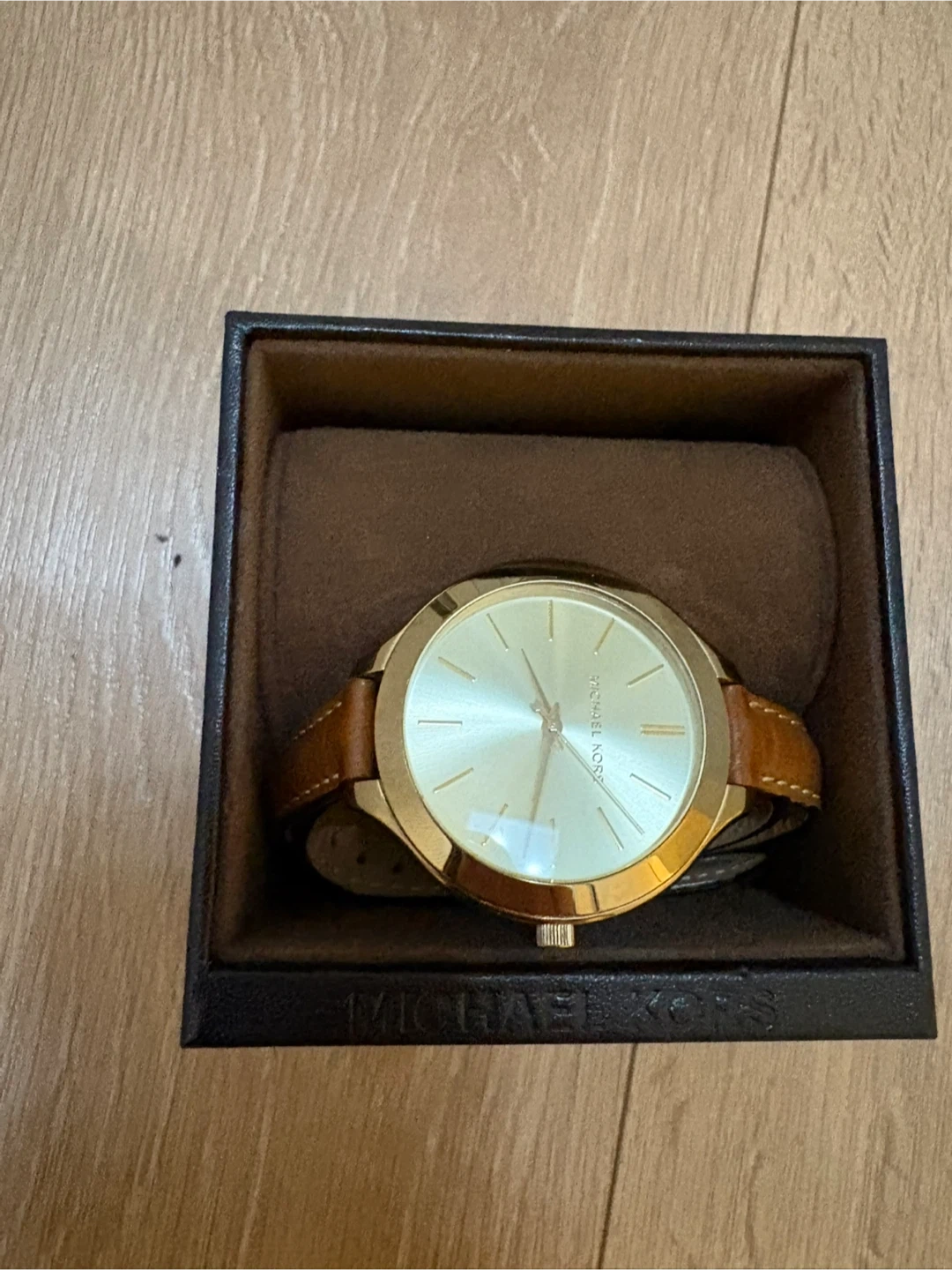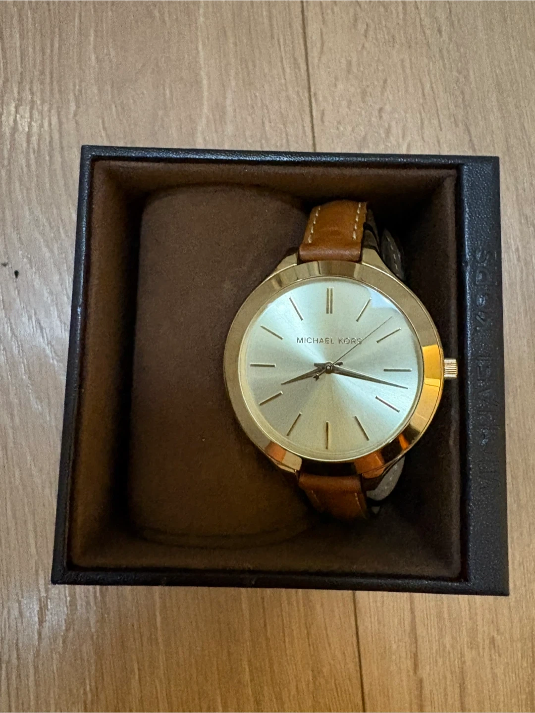 Selling a beautiful Michael Kors ladies watch! It features a gold-tone case and a stylish brown leather strap. It comes with its original box, so it would make a lovely gift. The watch is in great condition and ready for a new home!