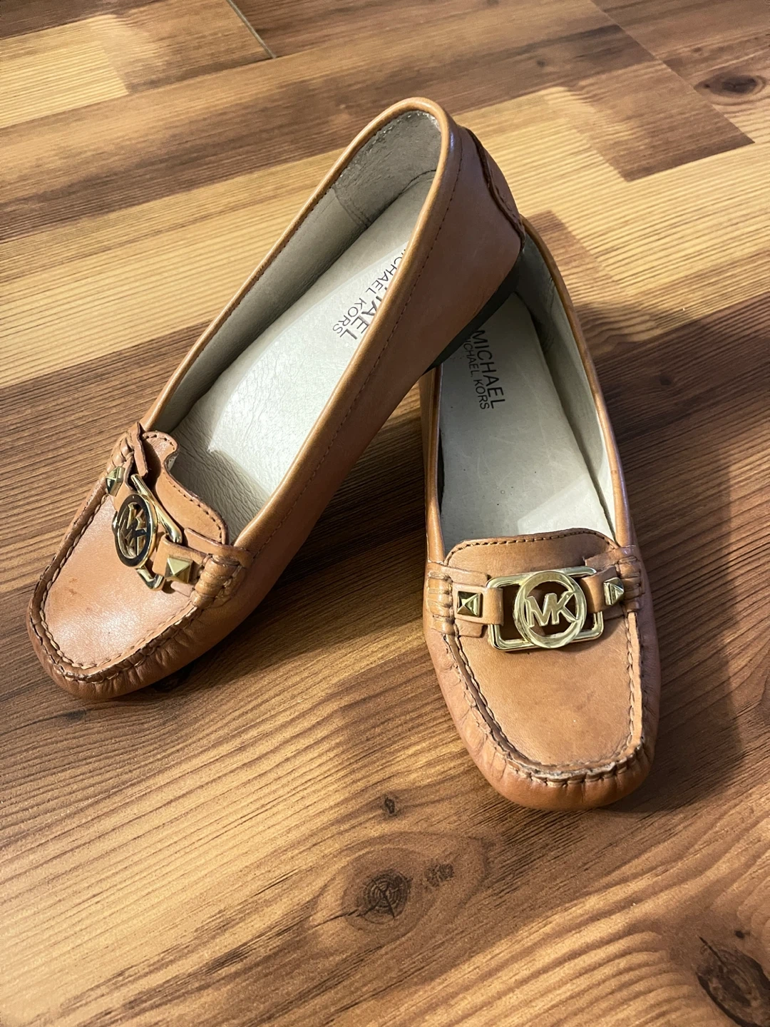 Michael Kors Leather Loafers These Michael Kors loafers are a stylish and comfortable addition to any wardrobe. They feature the classic MK logo and a sleek leather design. Perfect for everyday wear! Size 6 1/2 Like new to good Pick up in new Westminster Firm price