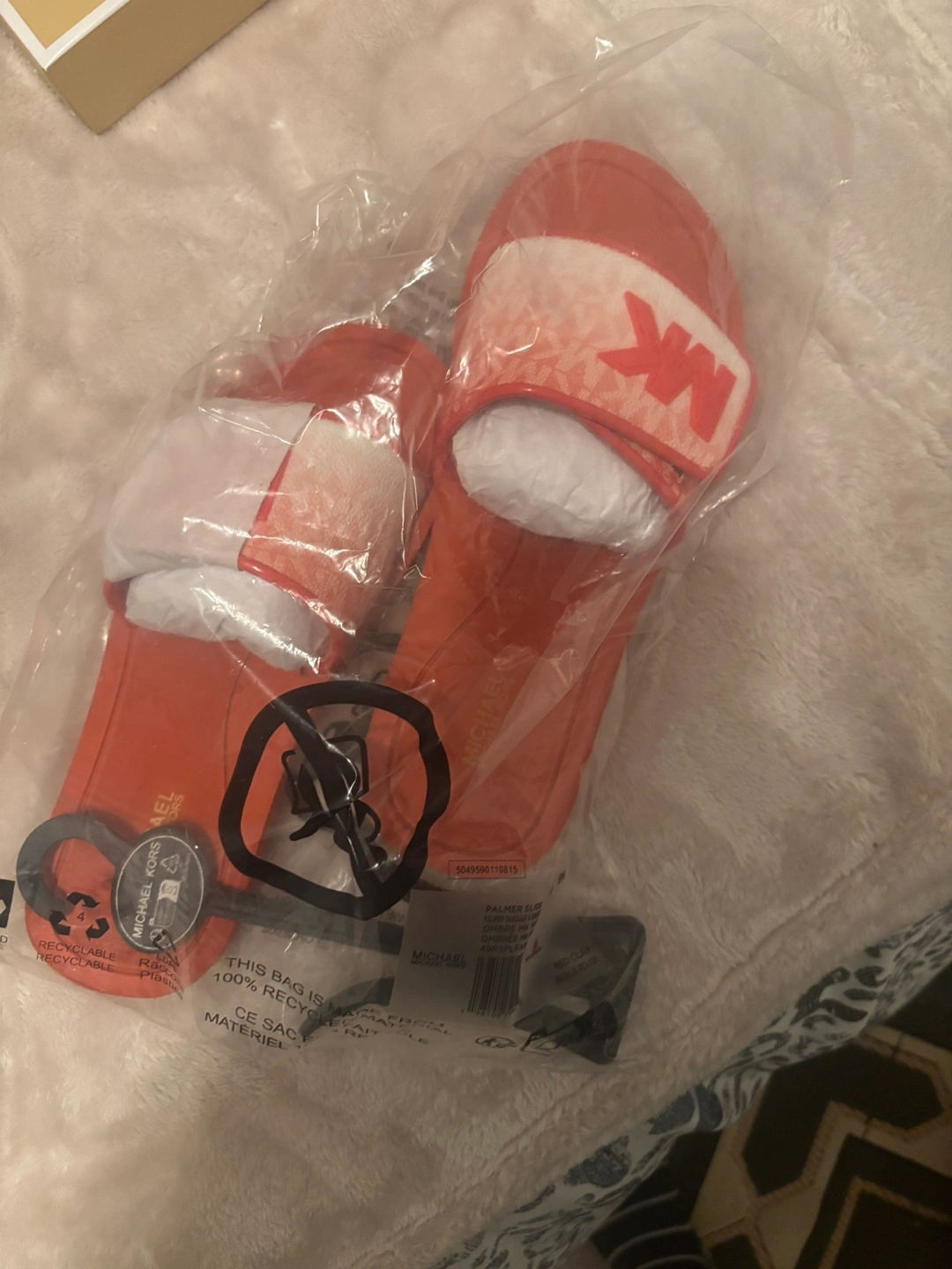 Show allBrand new Michael Kors slides. Bright orange colour. Comes in original packaging.