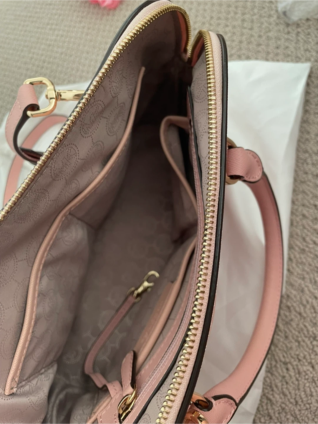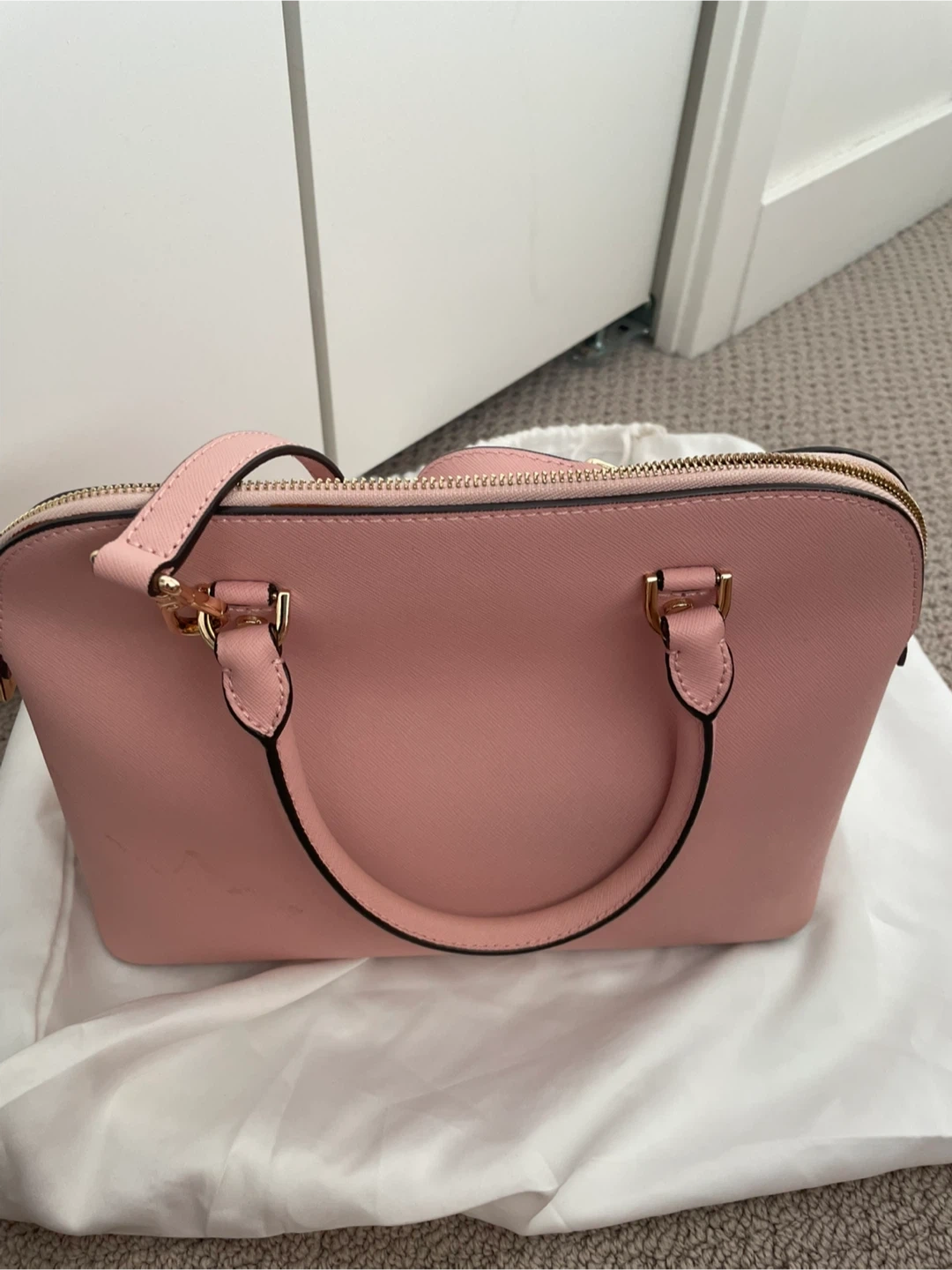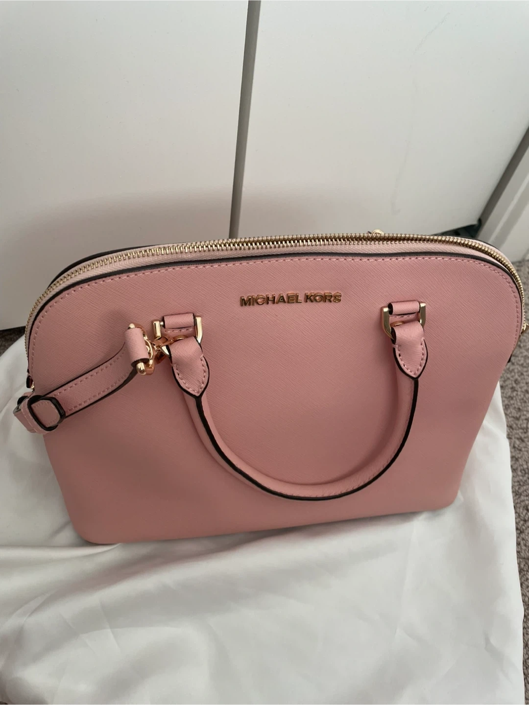 Selling a cute Michael Kors dome satchel in a lovely pink colour! It's in good condition with a few minor marks as shown in the photos. Perfect for everyday use or a special occasion