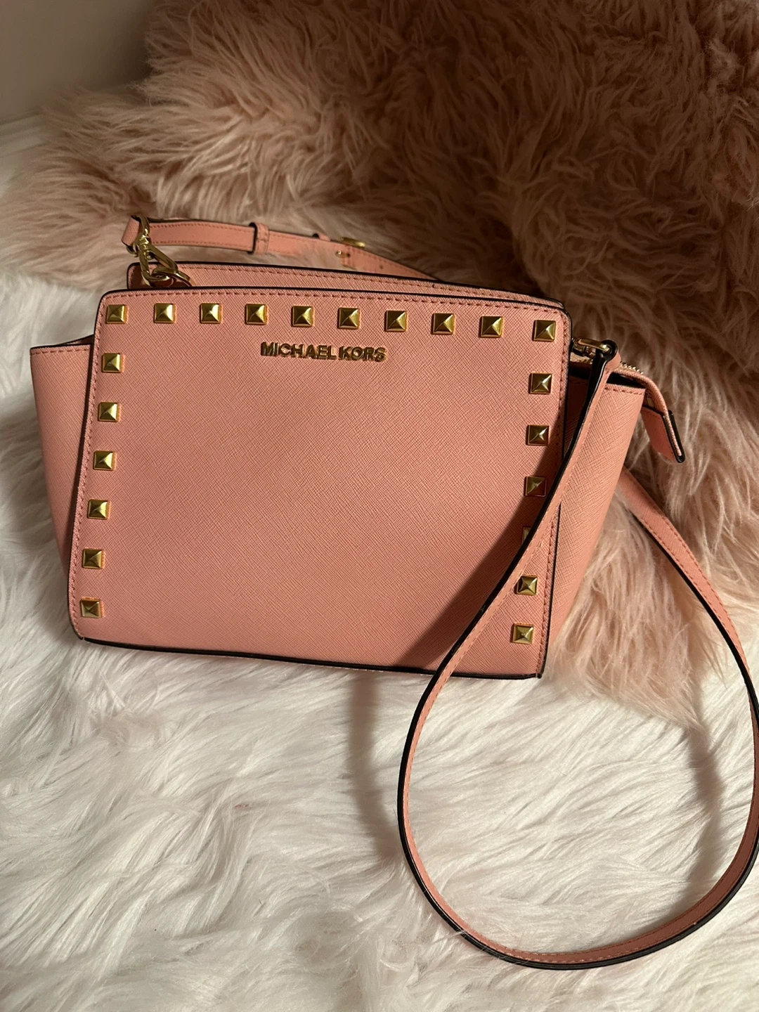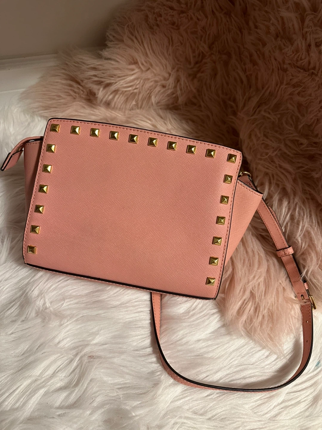 Selling a cute Michael Kors handbag! It's a lovely pink colour with gold studs. Great for adding a pop of colour to your outfit!