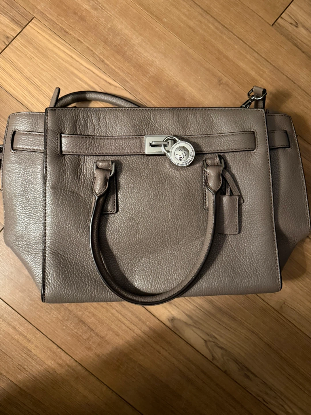 Selling a Michael Kors satchel bag! It's a stylish and practical bag. The colour is a beautiful neutral grey, perfect for everyday use. It's in great condition and ready for a new home Asking $50 obo