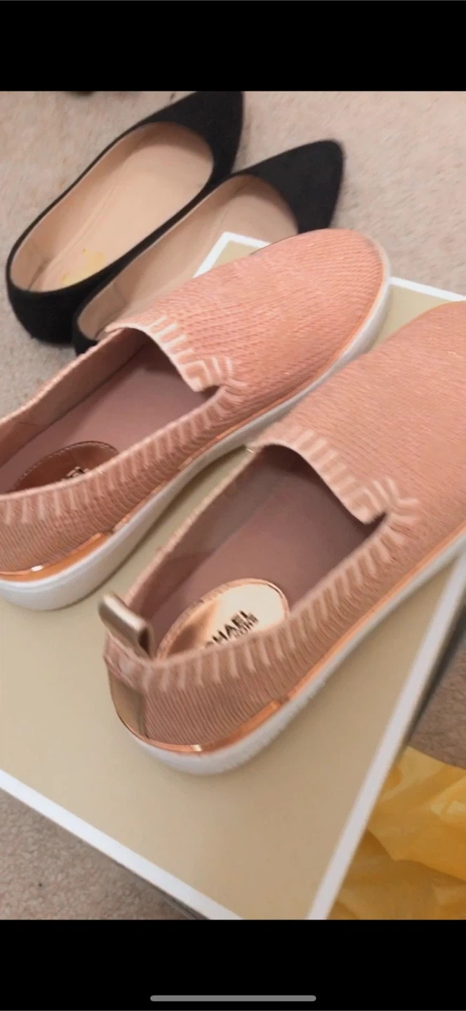 Selling a pair of Michael Kors slip-on sneakers in a lovely rose and gold colour! They are in great condition and are a size 7. Perfect for casual wear or running errands around town