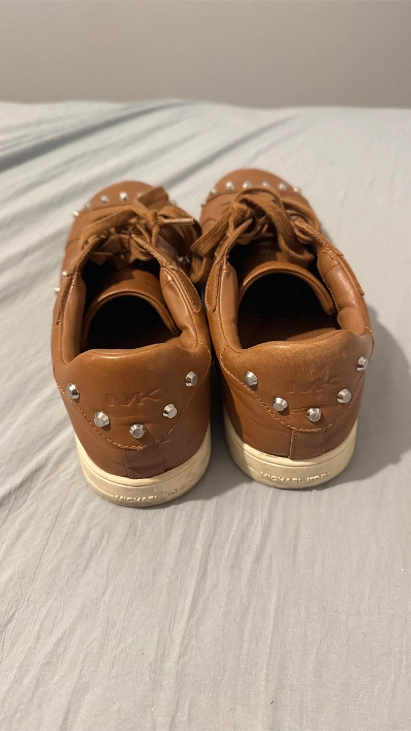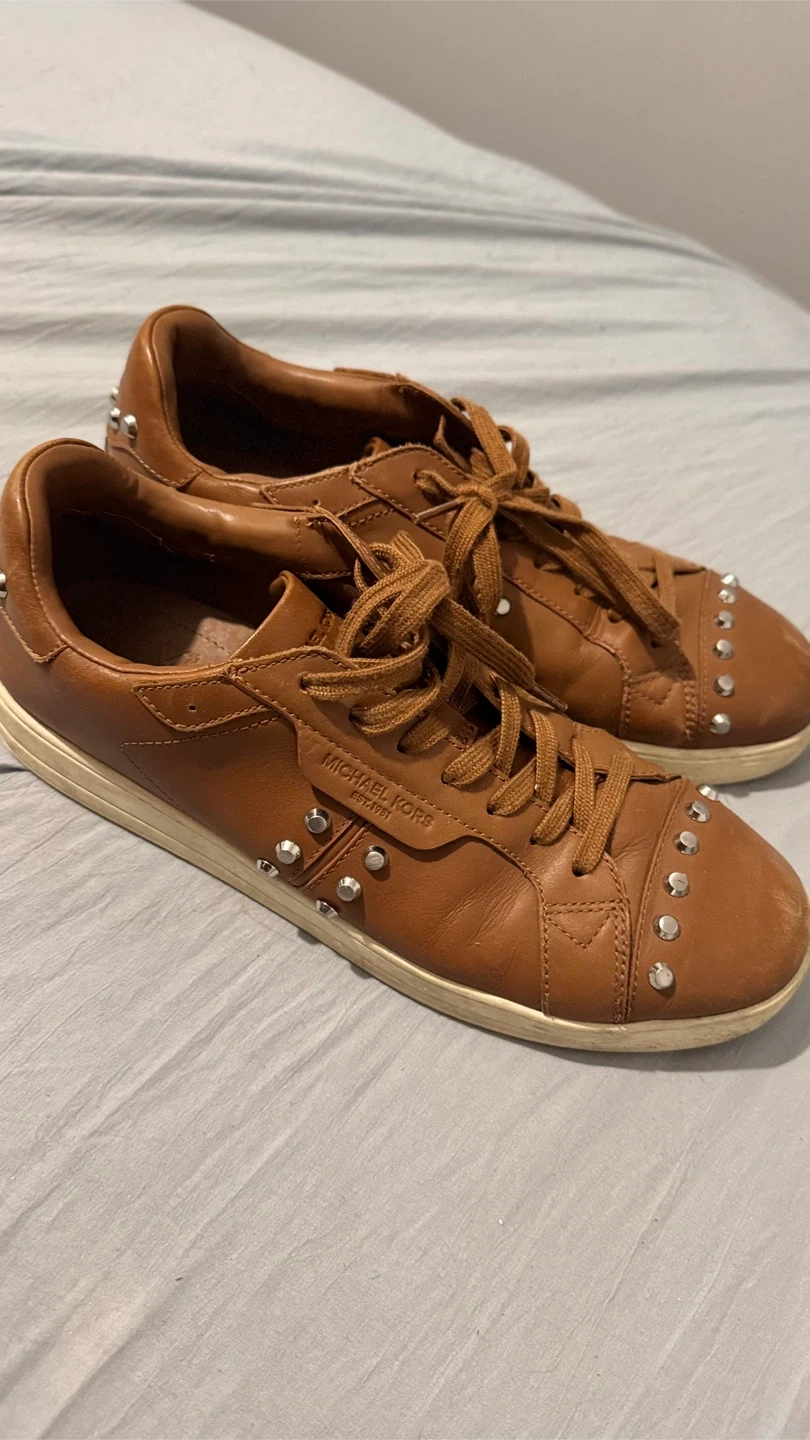 Selling a pair of Michael Kors leather sneakers in a lovely brown colour. They feature stylish stud detailing. These are in good condition and ready for a new home! 9.5