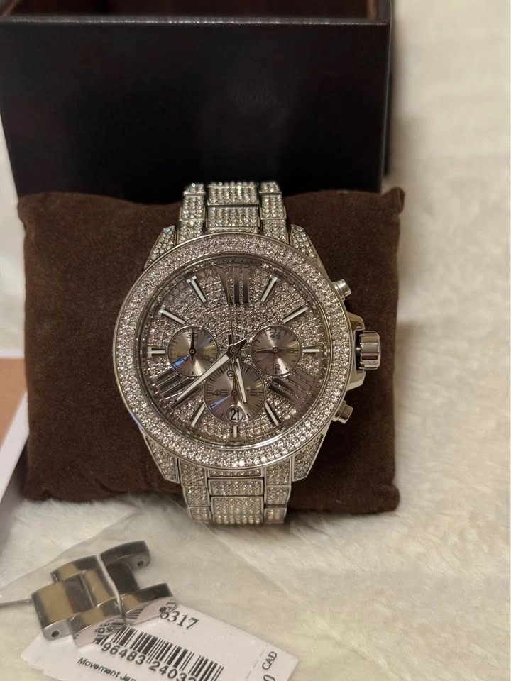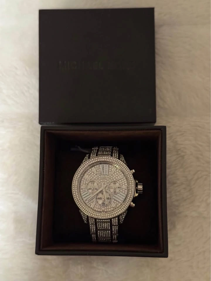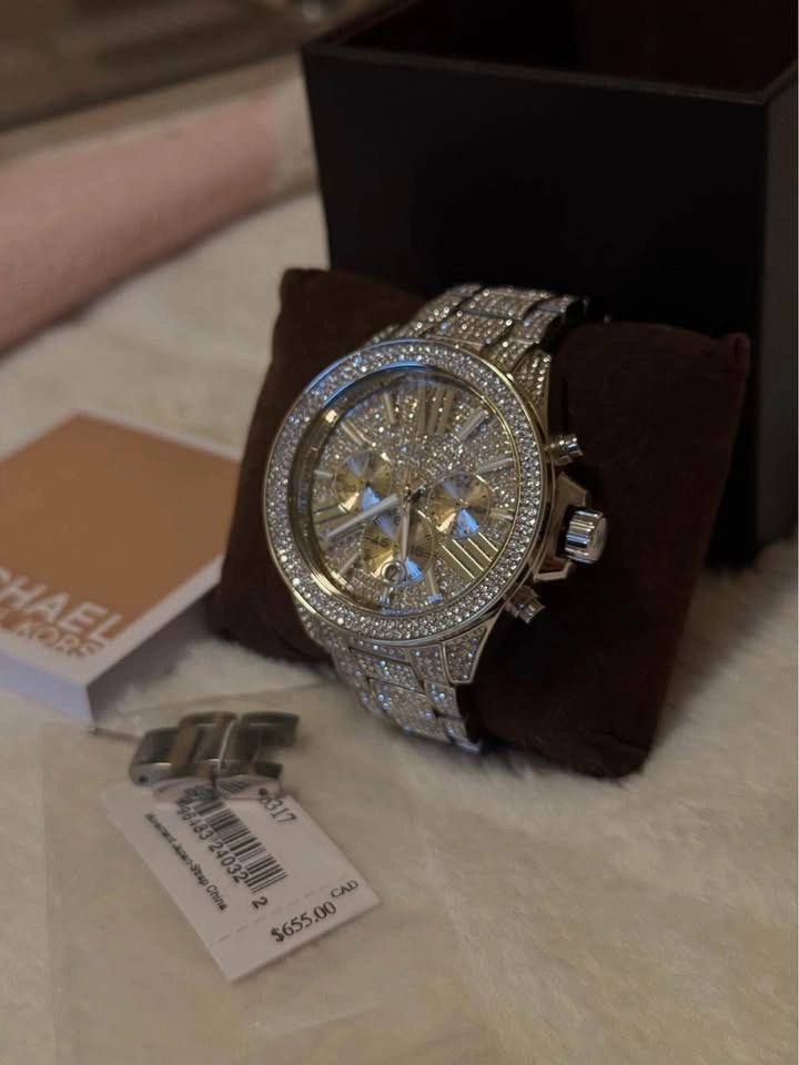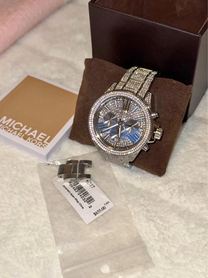 Michael Kors Crystal Watch. - Crystal details on the face of the watch with crystal & stainless steel band. - In perfect condition. - Comes with box, extra link, booklet & tag. - Purchased for $655.00, selling for $200.00. Message for any further inquiries:)