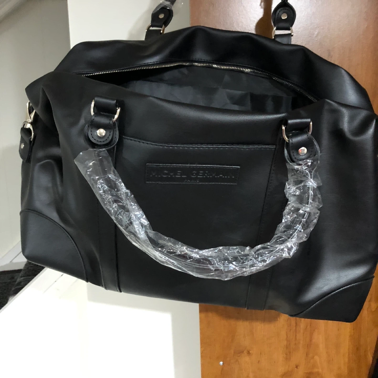 Selling a stylish Michel Germain duffle bag in black leather! It's in great shape and ready for your next trip or gym session.