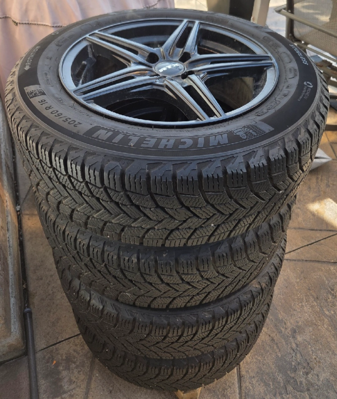 Selling a set of four Michelin X-Ice Snow tires mounted on RTX rims. The tire size is 205/60R16. They're in great shape and ready to go for winter!